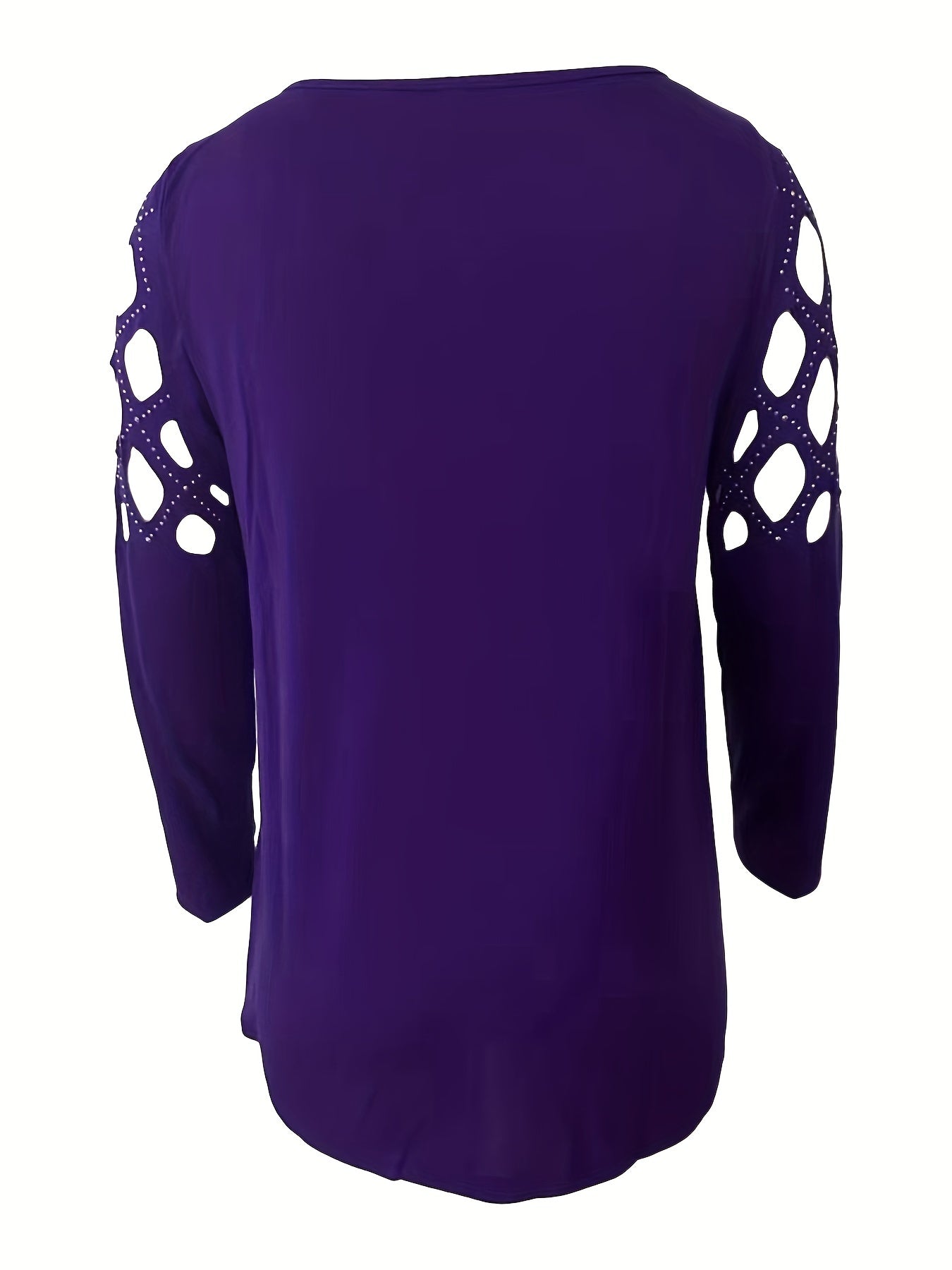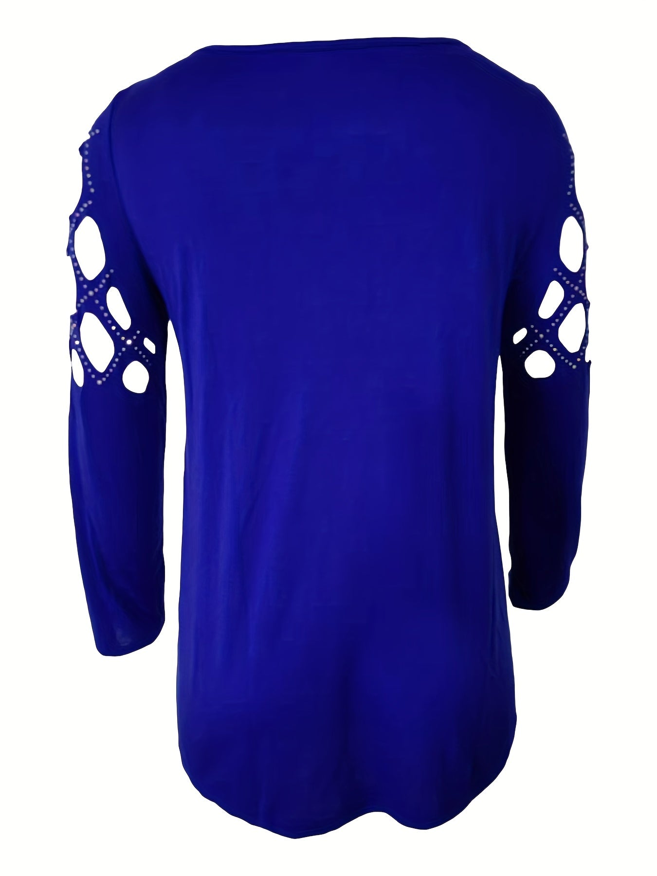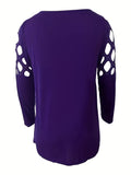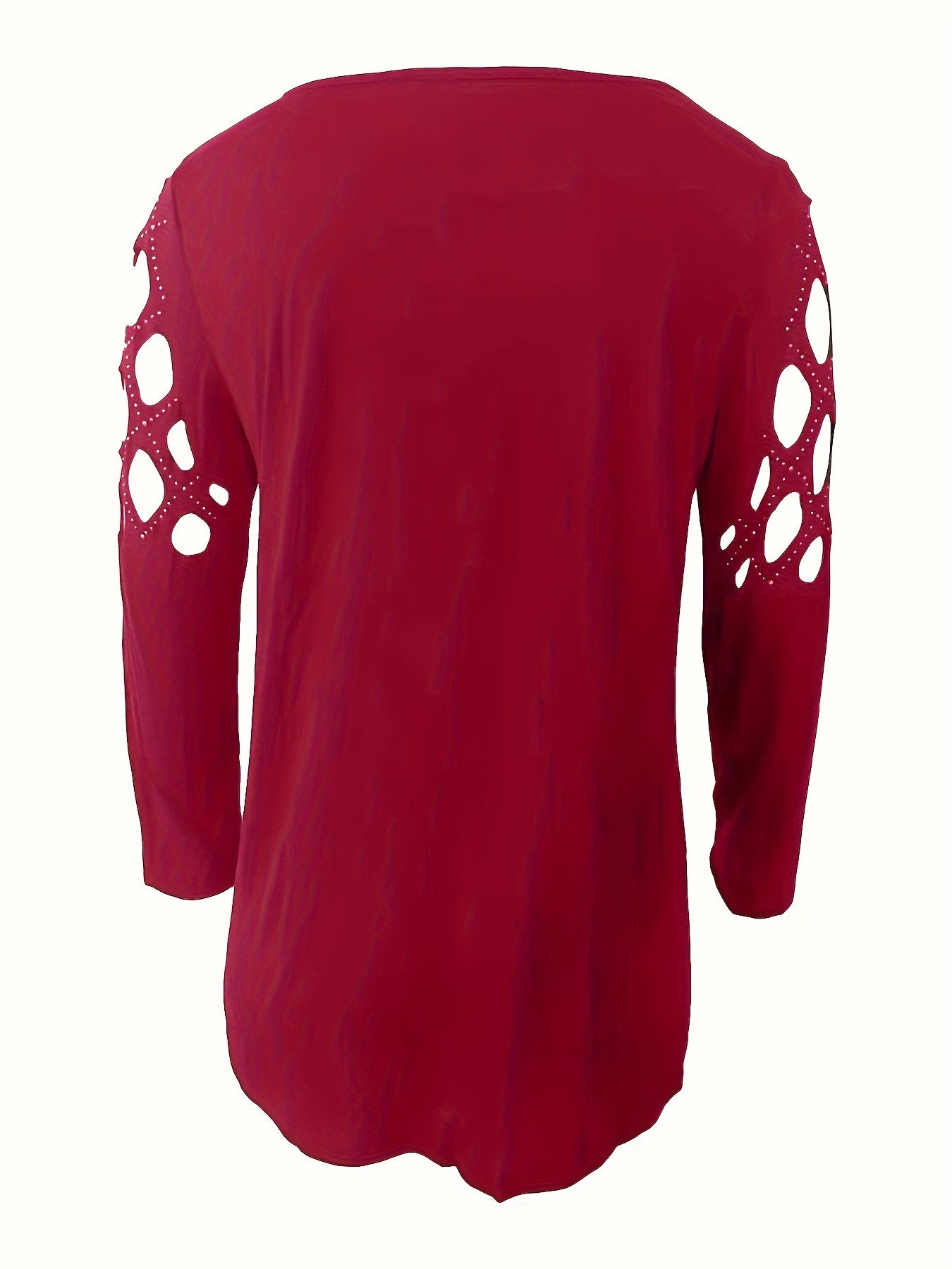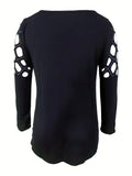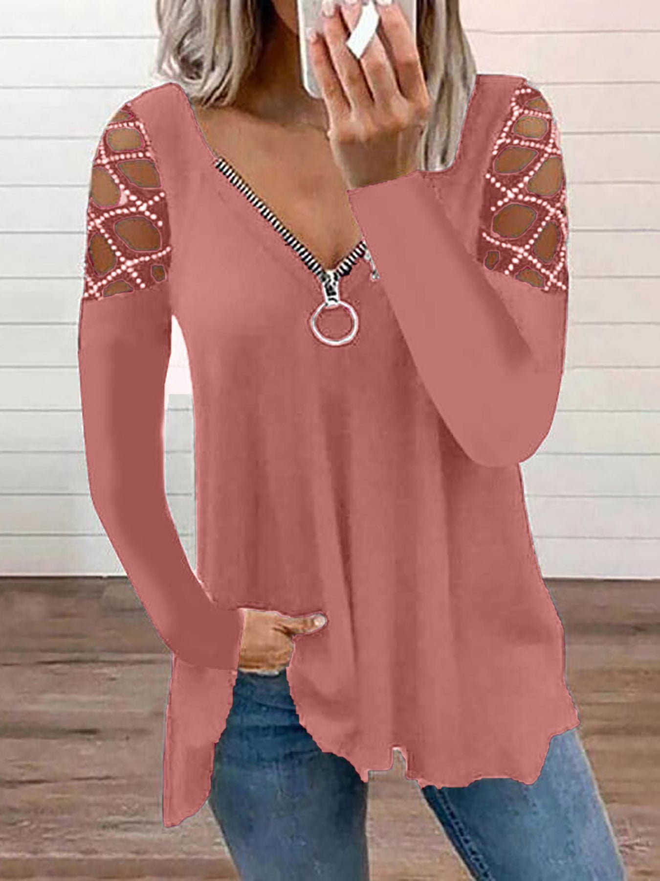 Cutout Zipper Front T-Shirt, Casual V Neck Long Sleeve T-Shirt