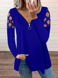 Sale Cutout Zipper Front T-Shirt, Casual V Neck Long Sleeve T-Shirt