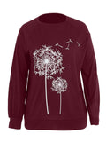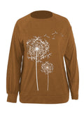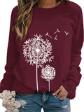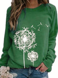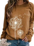 Dandelion Print Crew Neck T-shirt, Casual Loose Long Sleeve T-Shirts Tops