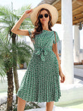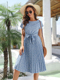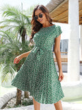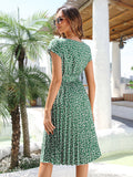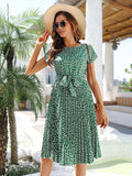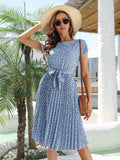 Ditsy Floral Print Belted Dress, Short Sleeve Casual Every Day Vacation Dress