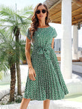 Sale Ditsy Floral Print Belted Dress, Short Sleeve Casual Every Day Vacation Dress