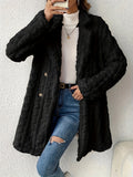 Double Breasted Lapel Teddy Coat, Versatile Long Sleeve Textured Thermal Winter Outerwear