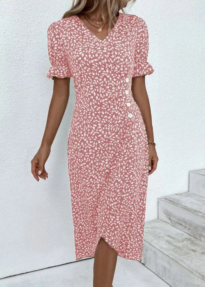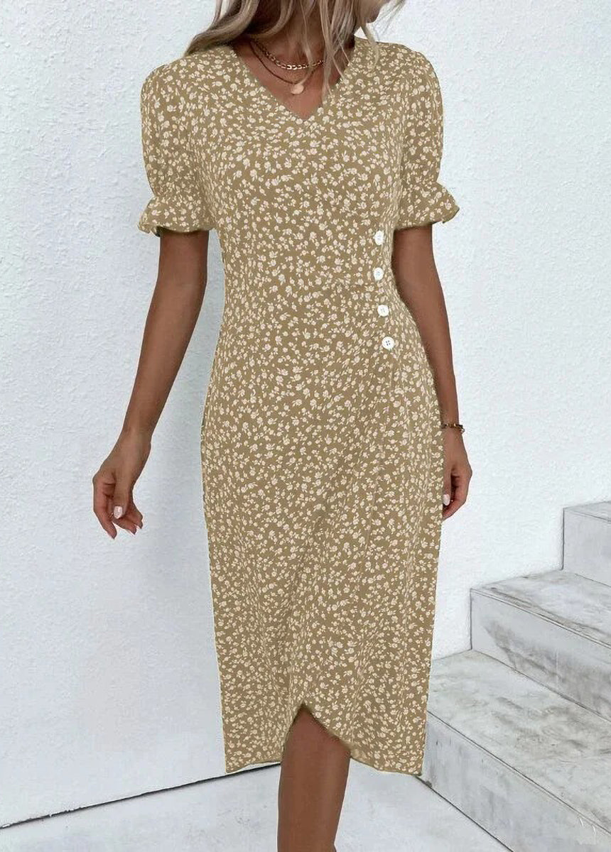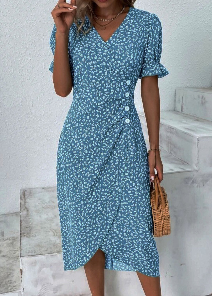 Sale Dress With Puffed Sleeves And Irregular Hem