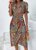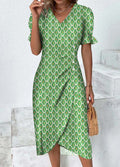Sale Women's Feather Print Crew Neck Blouse - Casual Cut Out Short Sleeve Top