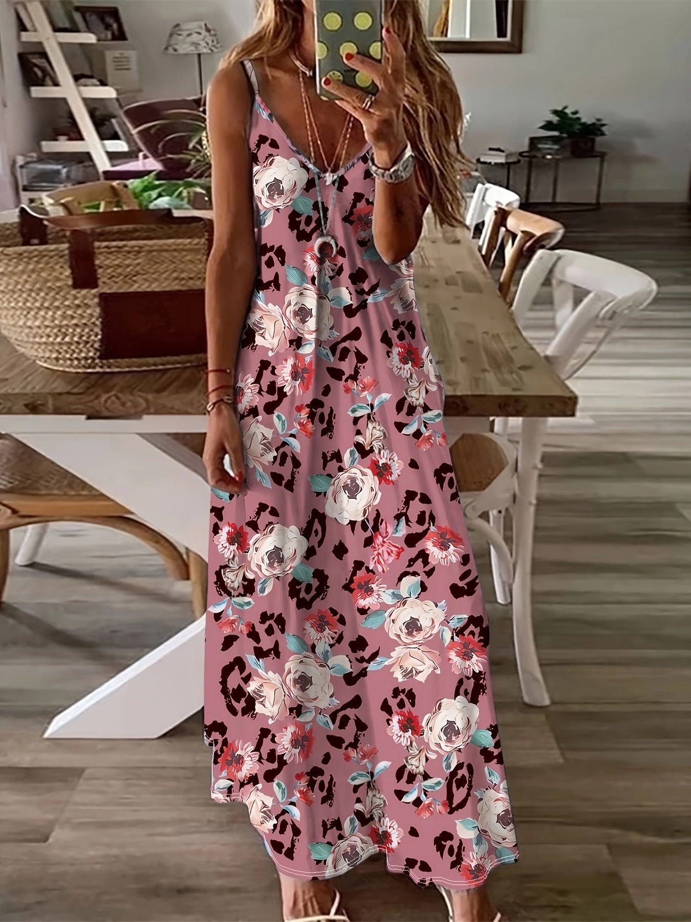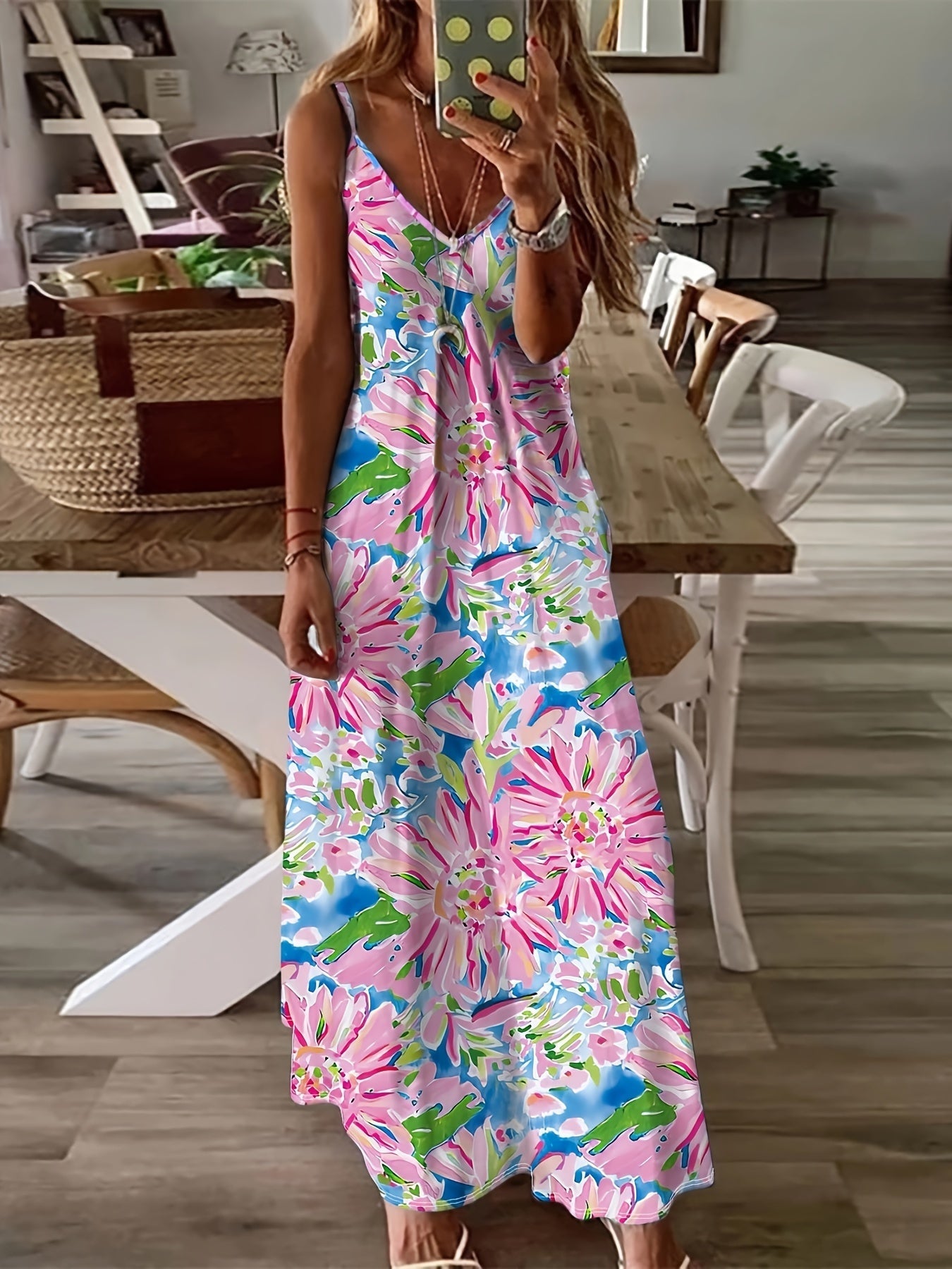 Sale Floral Print Cami Dress, Crew Neck Mini Strap Dress, Casual Every Day Dress