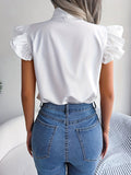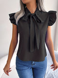 Elegant Bow Tie Flutter Sleeve Blouse with Ruffle Trim