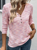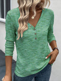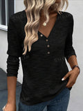 Elegant Button Detail V-Neck Long Sleeve T-Shirt