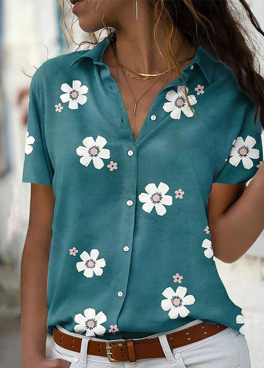 Upgrade your daily wardrobe with our long sleeve shirt collar top featuring a stunning floral print.