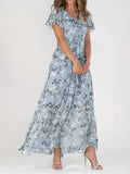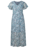 Sale Women's Feather Print Crew Neck Blouse - Casual Cut Out Short Sleeve Top