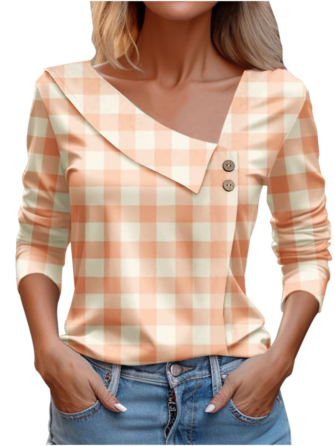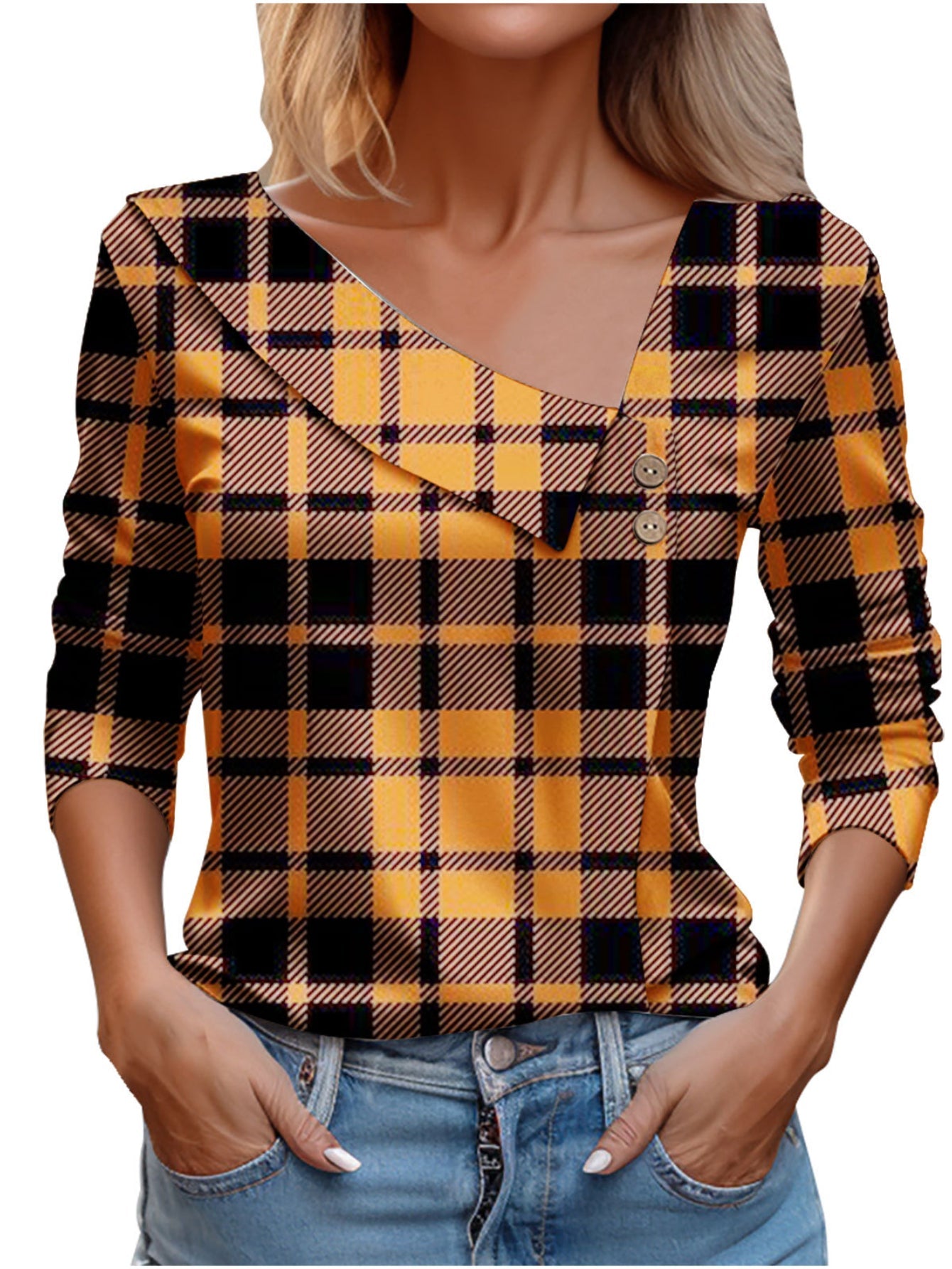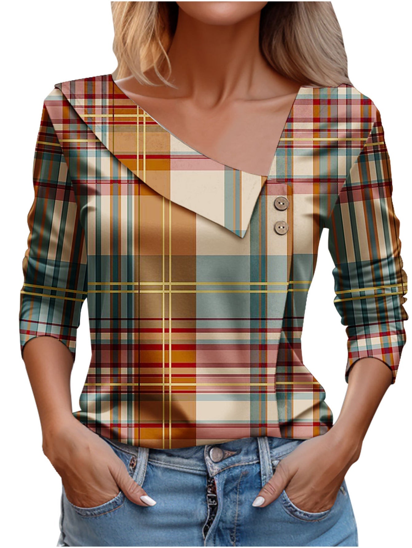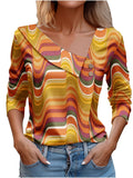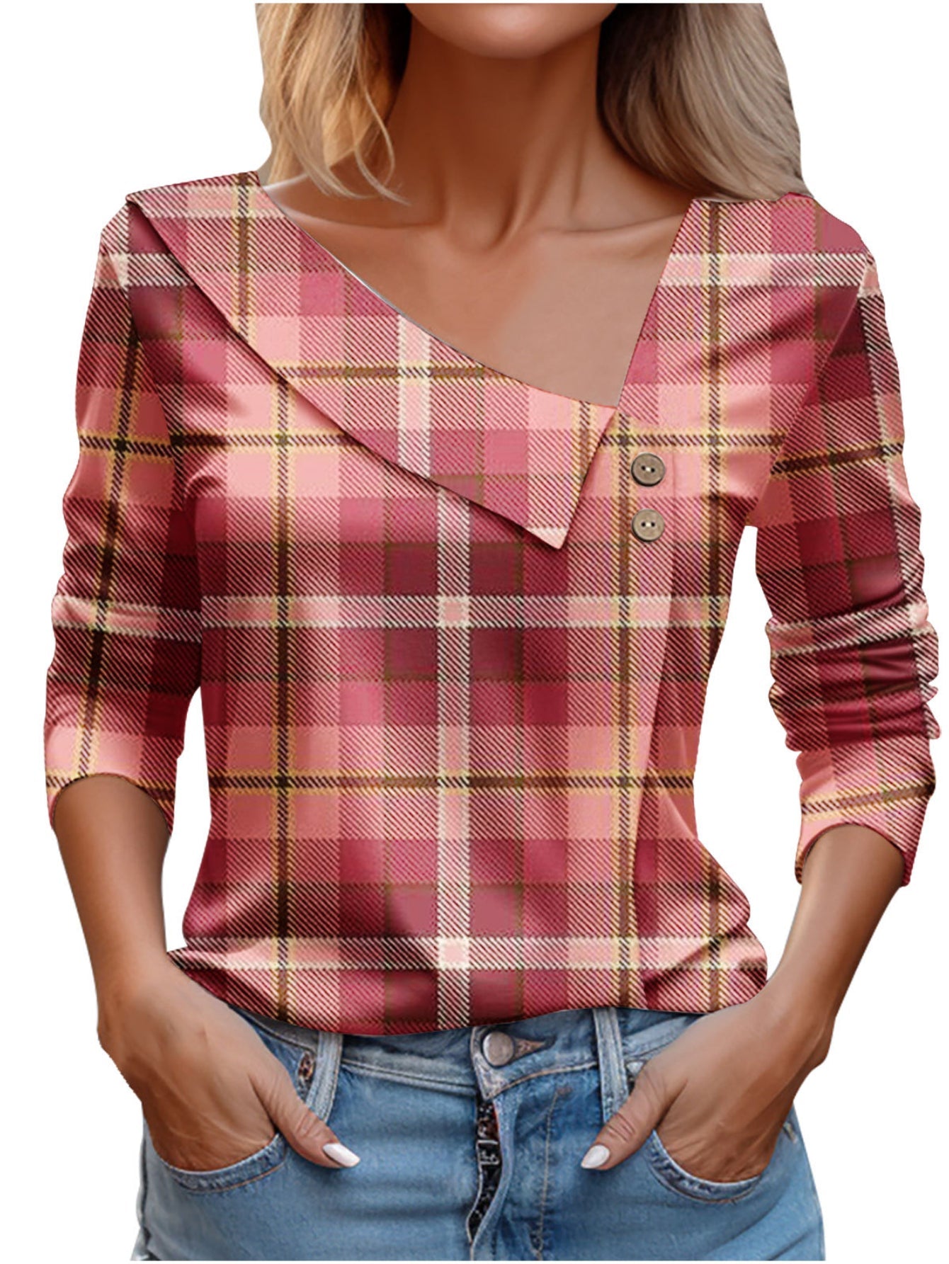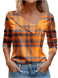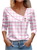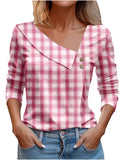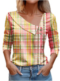 Chic Plaid Print Elegant Long Sleeve V-Neck T-Shirt
