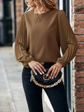 Elegant Round Neck Long Sleeve Blouse - Women's Polyester Shirt for Mature Ladies - Machine Washable, Non