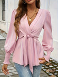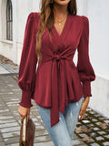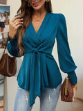 Elegant Specialty V-Neck Long Sleeve Shirt - Solid Color, X Fit, No Belt, Long Sleeve