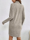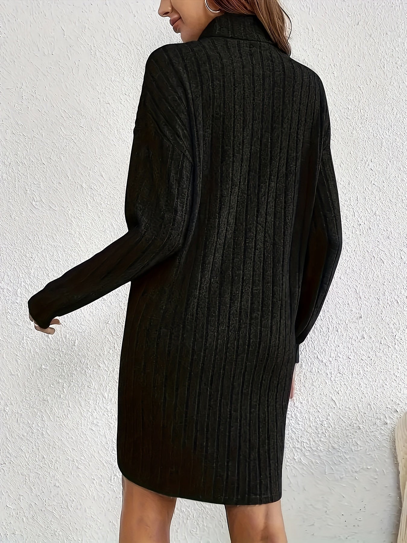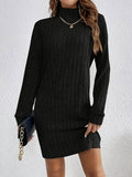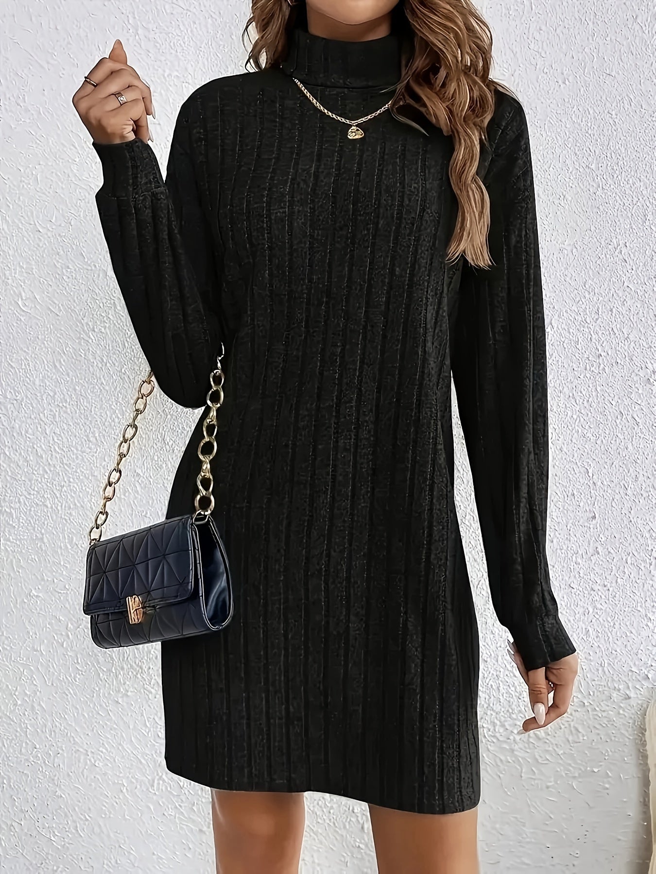 Elegant Turtleneck Knit Dress for Women - Soft, Stretchy Long Sleeve Design