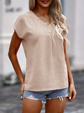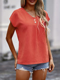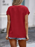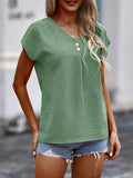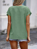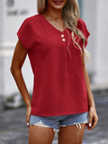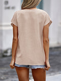 Sale Solid Pleated Trim Blouse, Casual Crew Neck Short Sleeve Blouse