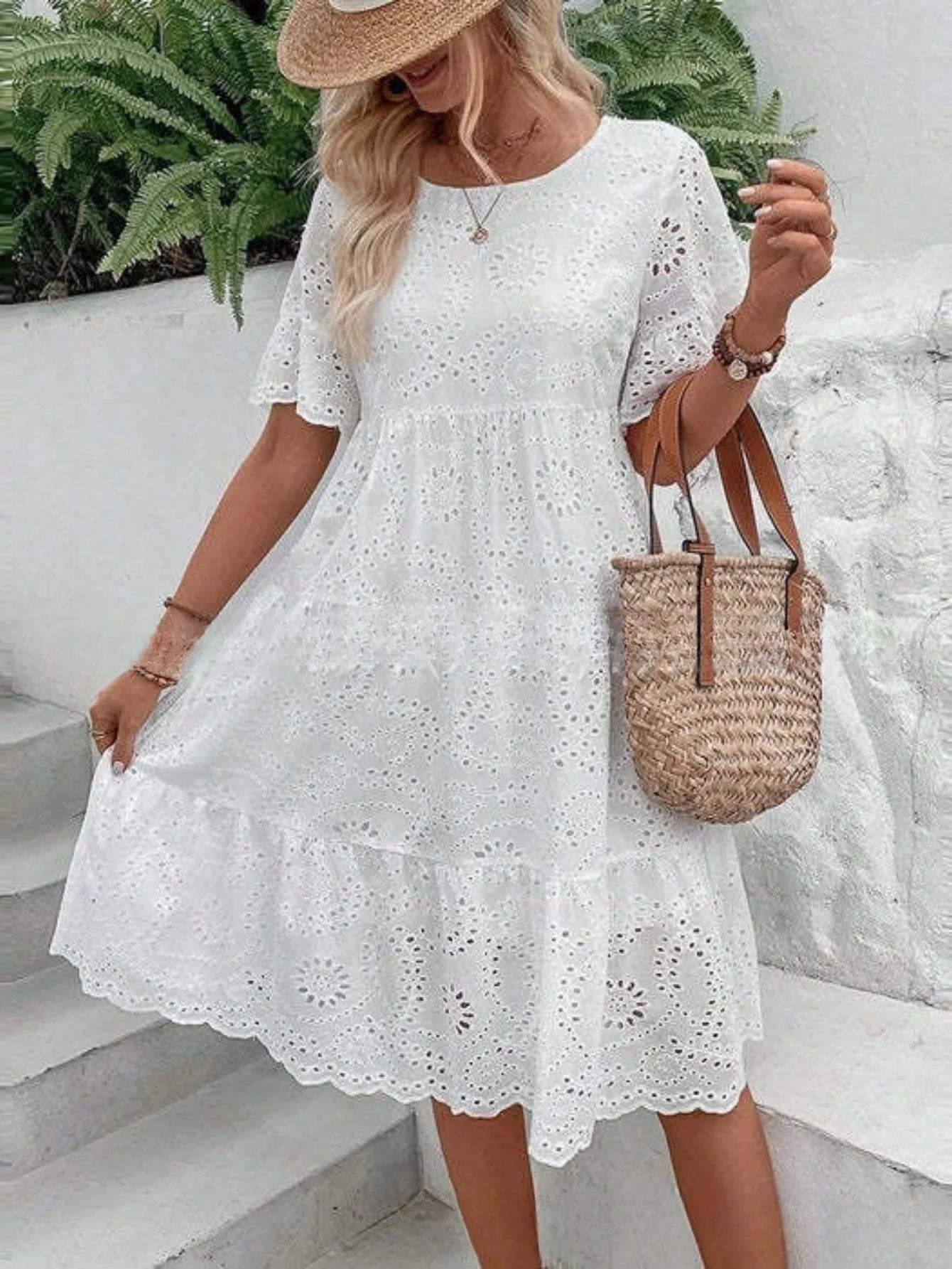 Embroidered Dress with a Hollowed-Out Lining in a Pure Color