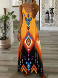 Ethnic Geo Print Cami Dress, Vacation Style Sleeveless A-line Maxi Slip Dress