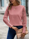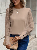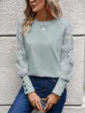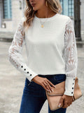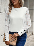 Sale Floral Lace Splicing Elegant T-Shirt, Crew Neck Long Sleeve T-Shirt