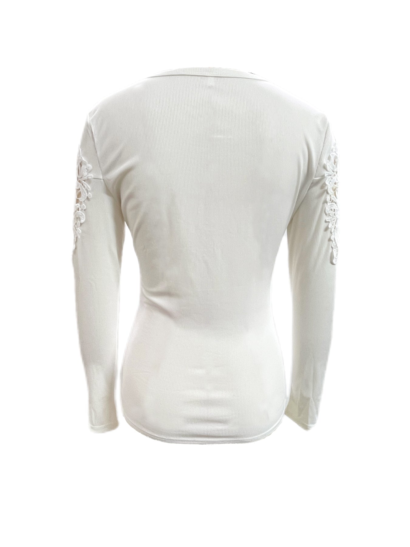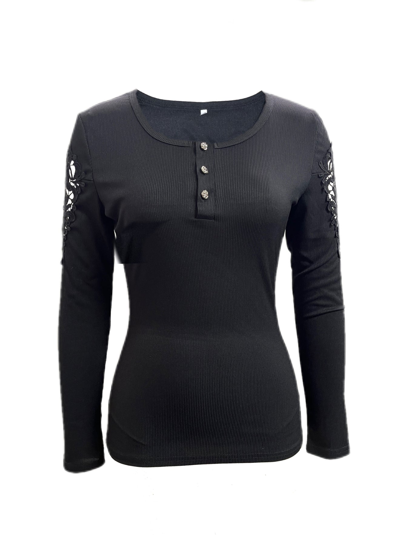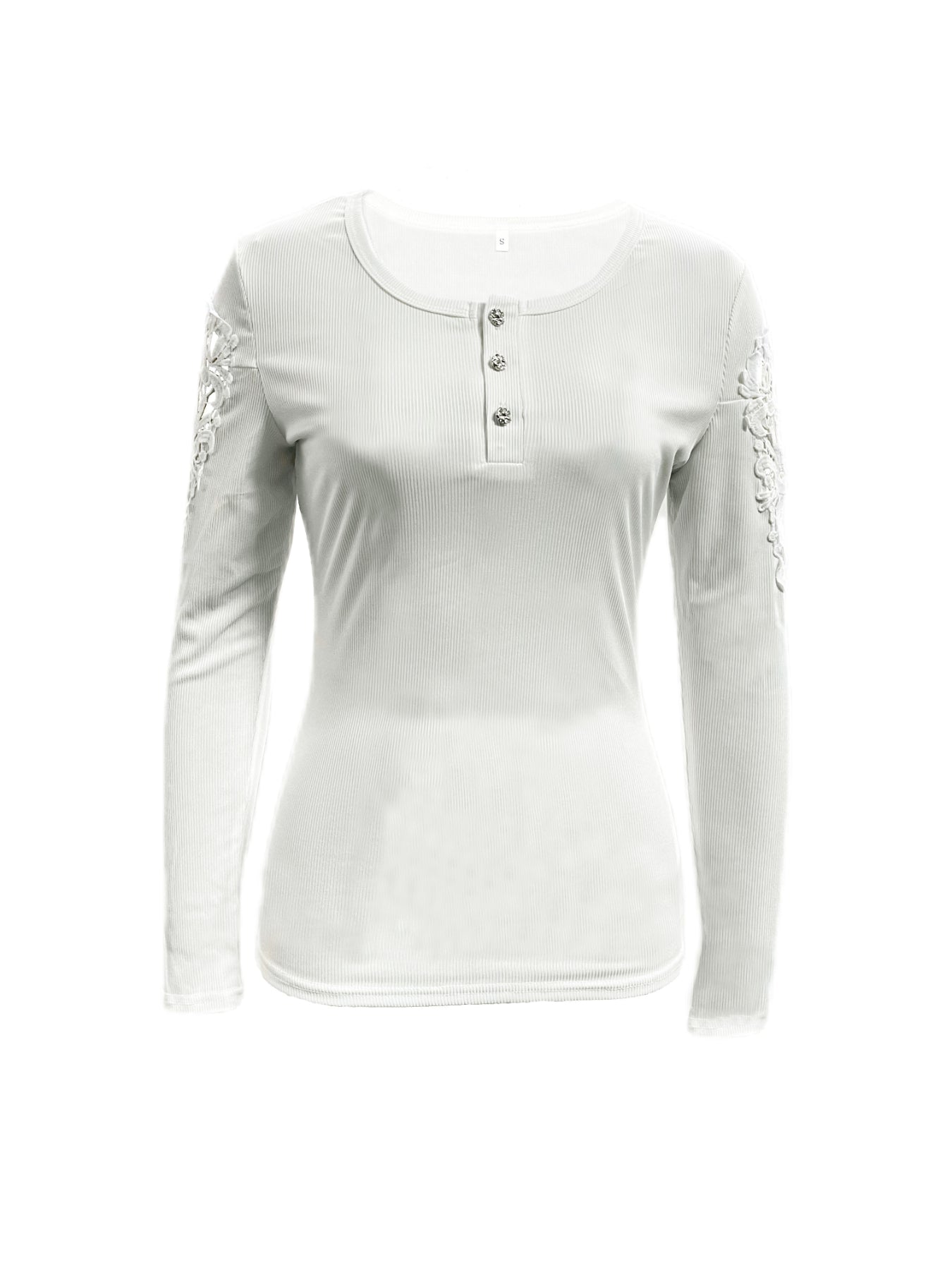 Sale Floral Lace Stitching T-Shirt, Casual Long Sleeve Top