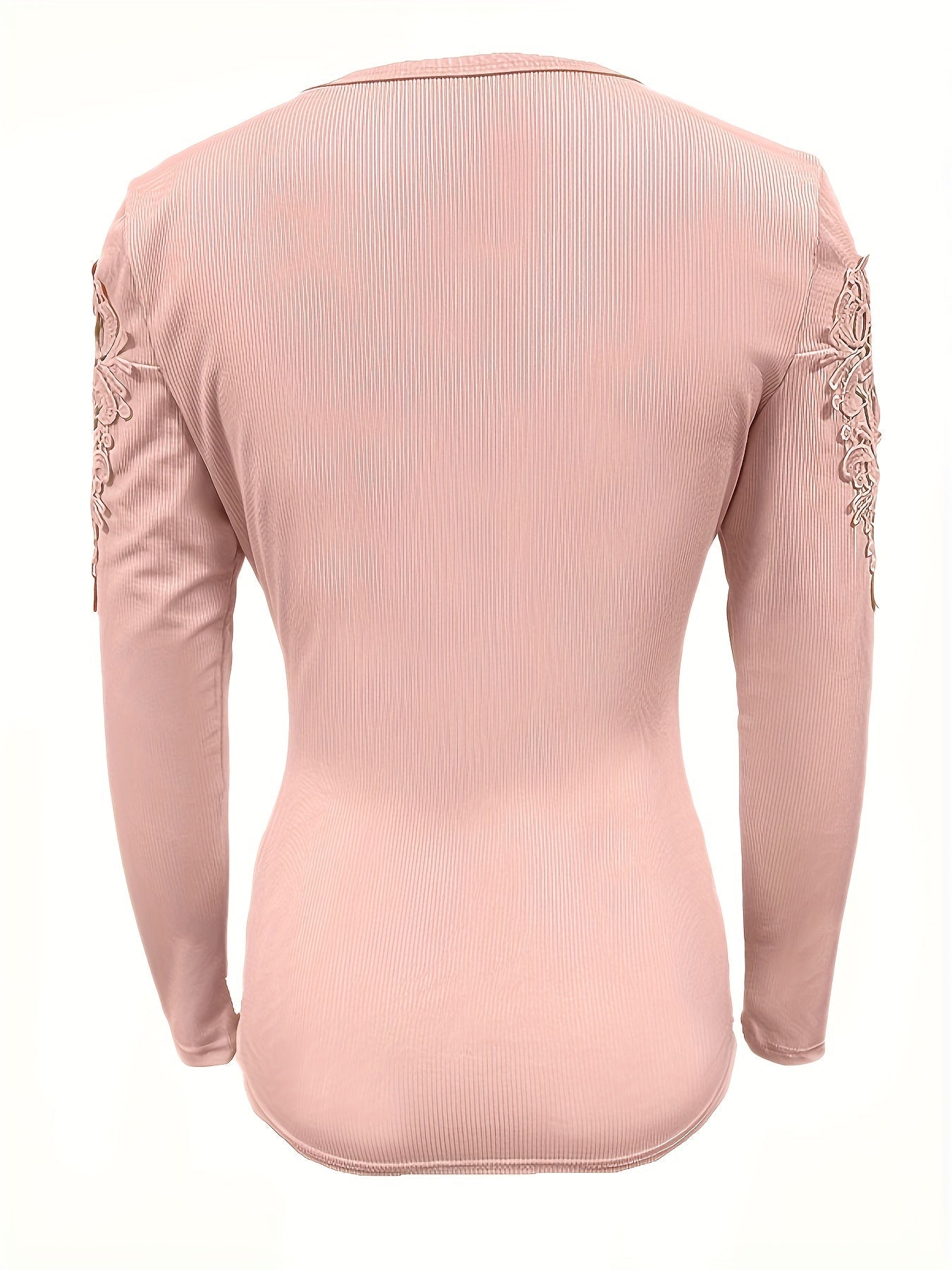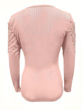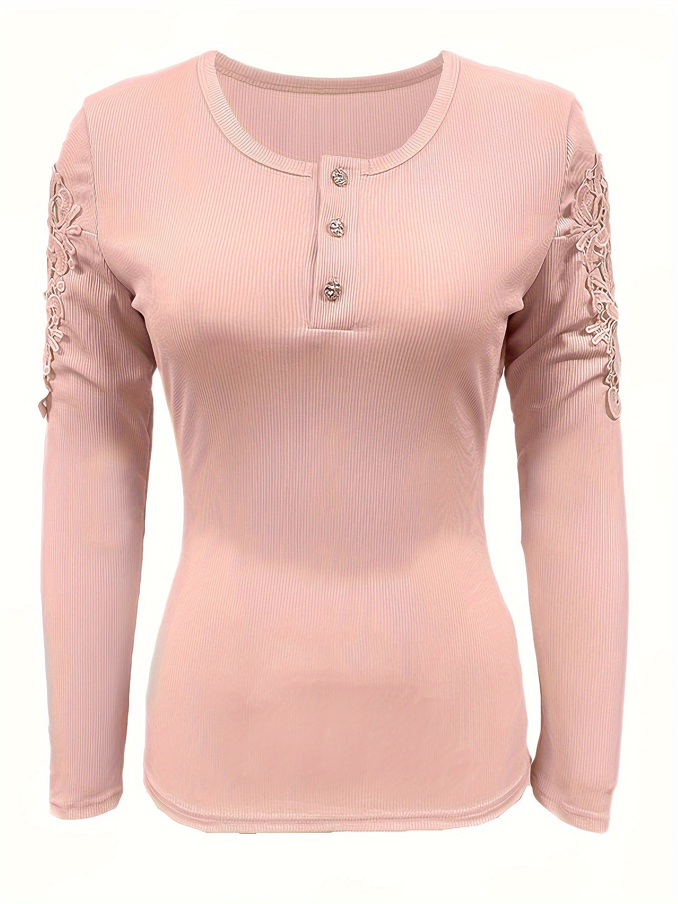 Floral Lace Stitching T-Shirt, Casual Long Sleeve Top