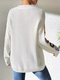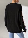 Floral Pattern Drop Shoulder Sweater, Elegant V Neck Long Sleeve Sweater