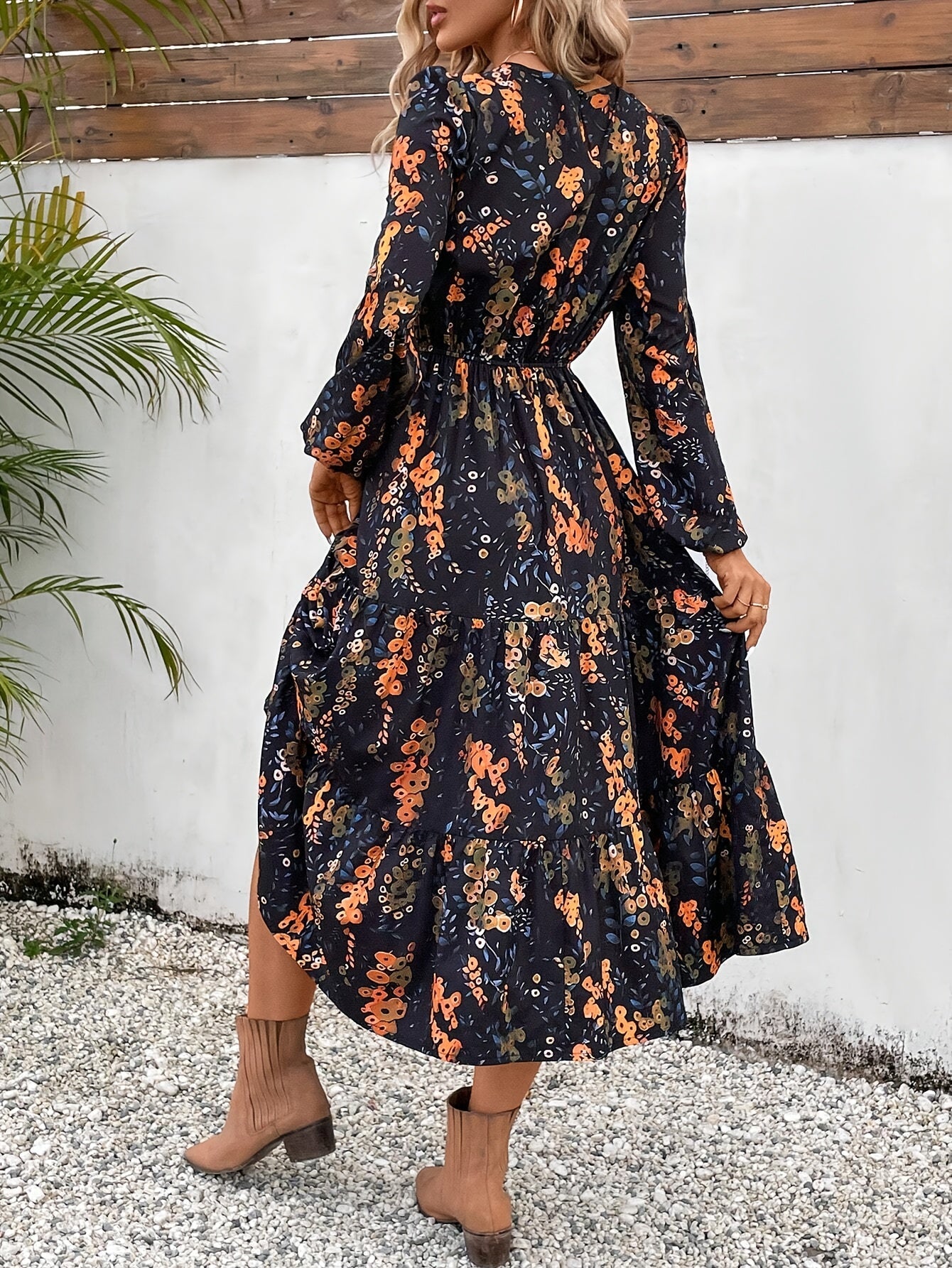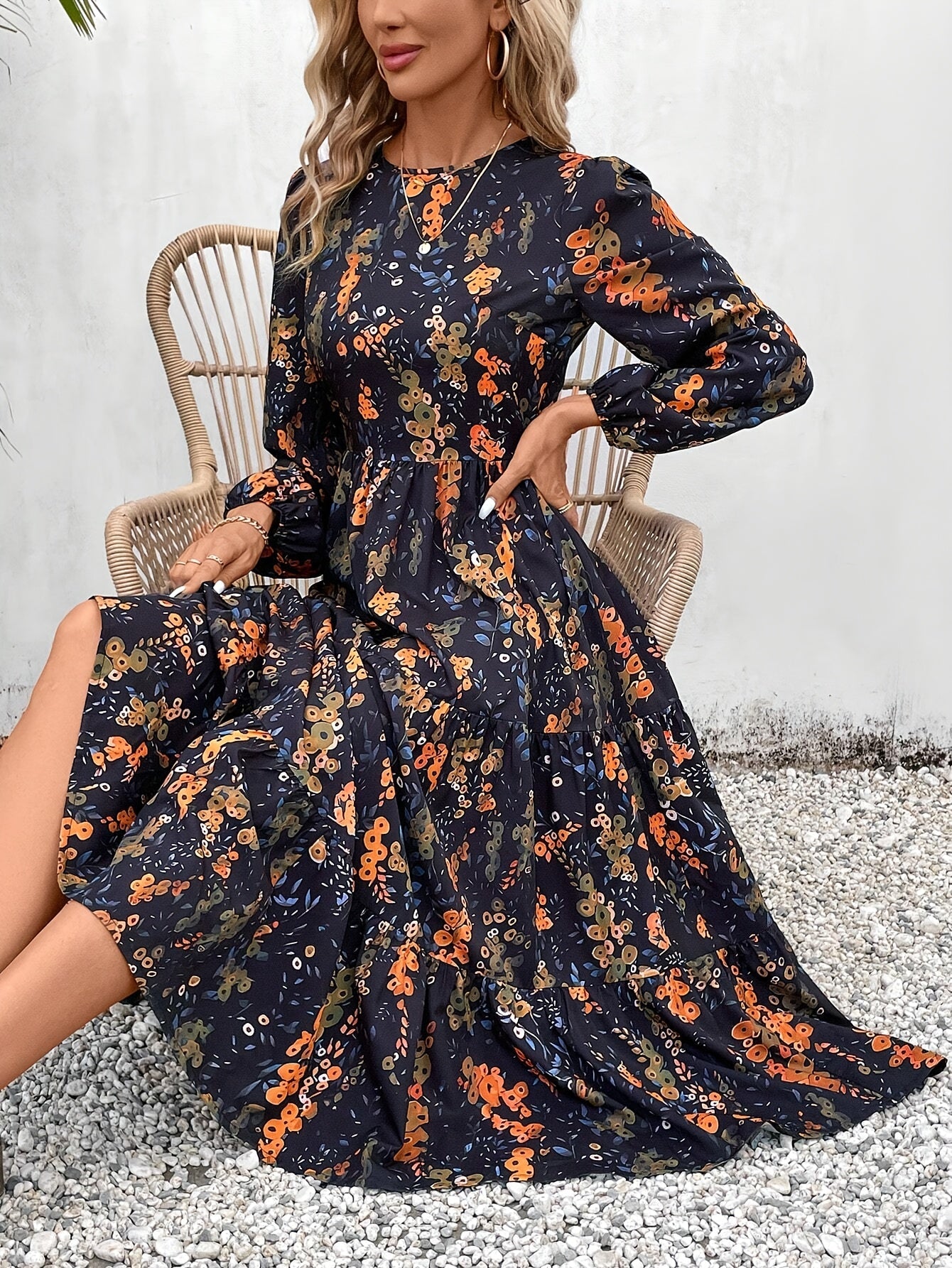 Floral Print A-Line Long Sleeve Dress for Women, Elegant Casual Dress