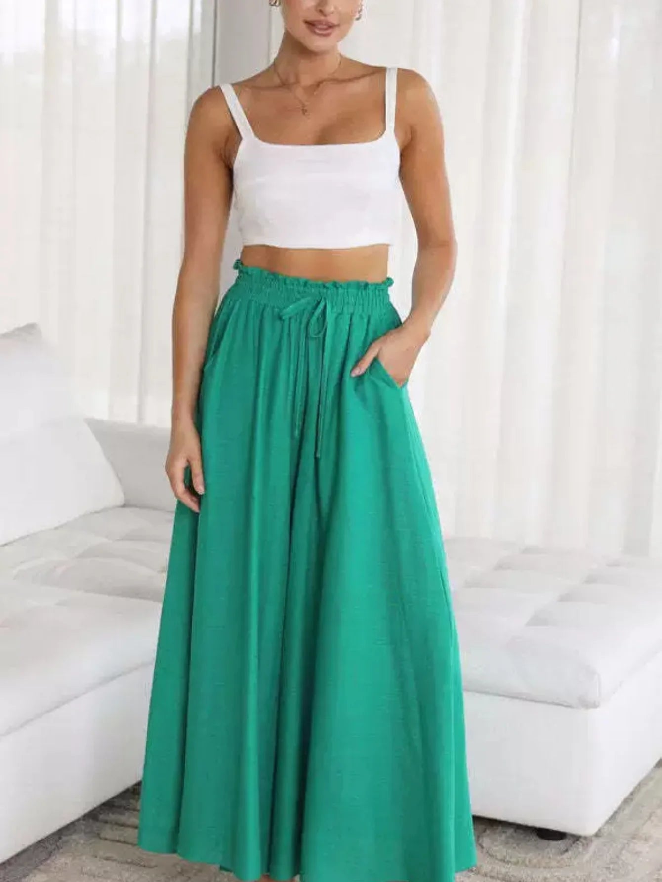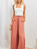 Floral Print Drawstring Palazzo Pants, Boho Vacation Elastic Waist Wide Leg Pants