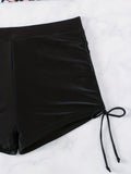 Sale Floral Print Drawstring Ring 2 Piece Set Tankini, Strappy High Waist Stretchy Boxer Shorts Swimsuits