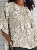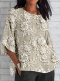 Sale Women's Feather Print Crew Neck Blouse - Casual Cut Out Short Sleeve Top