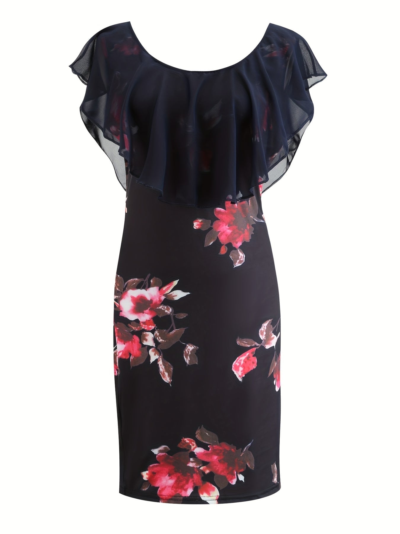 Sale Floral Print Ruffle Trim Bodycon Mini Dress - Women's Casual Beach Summer Short Sleeve Dress