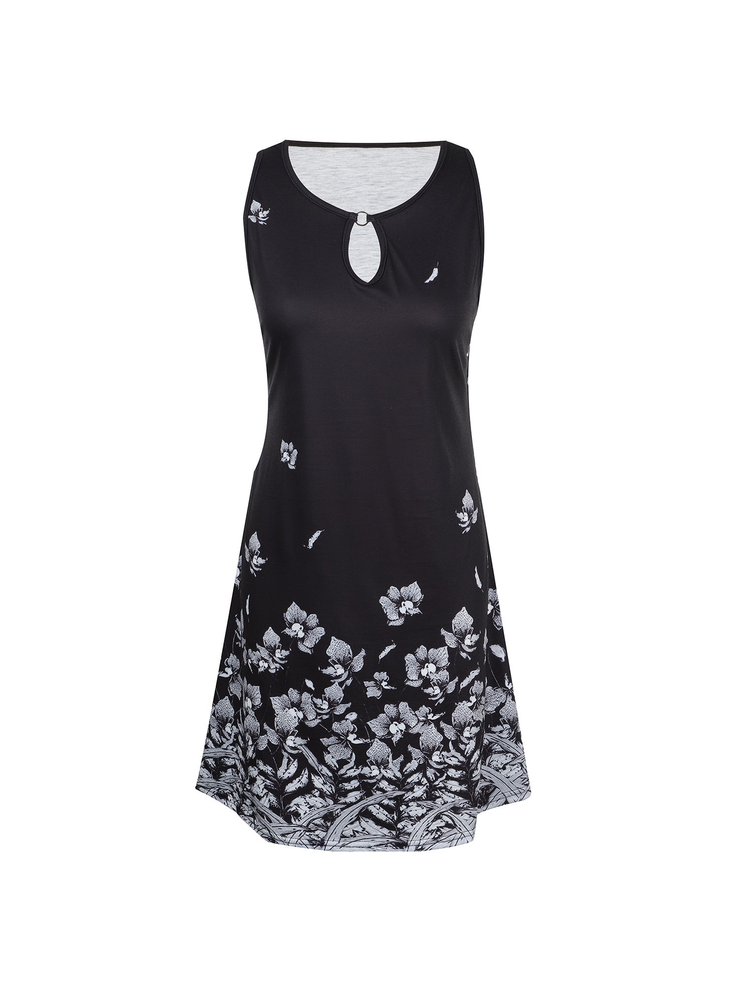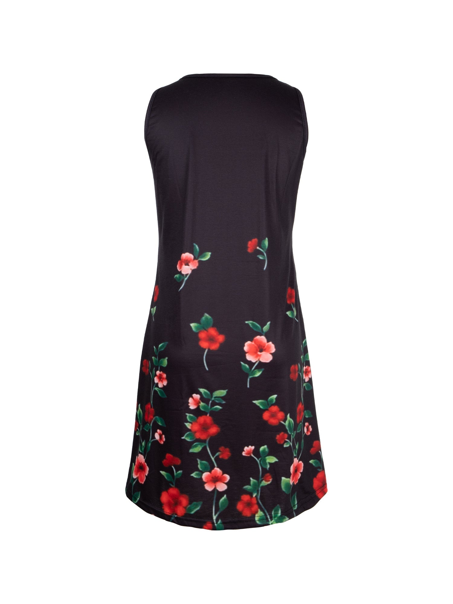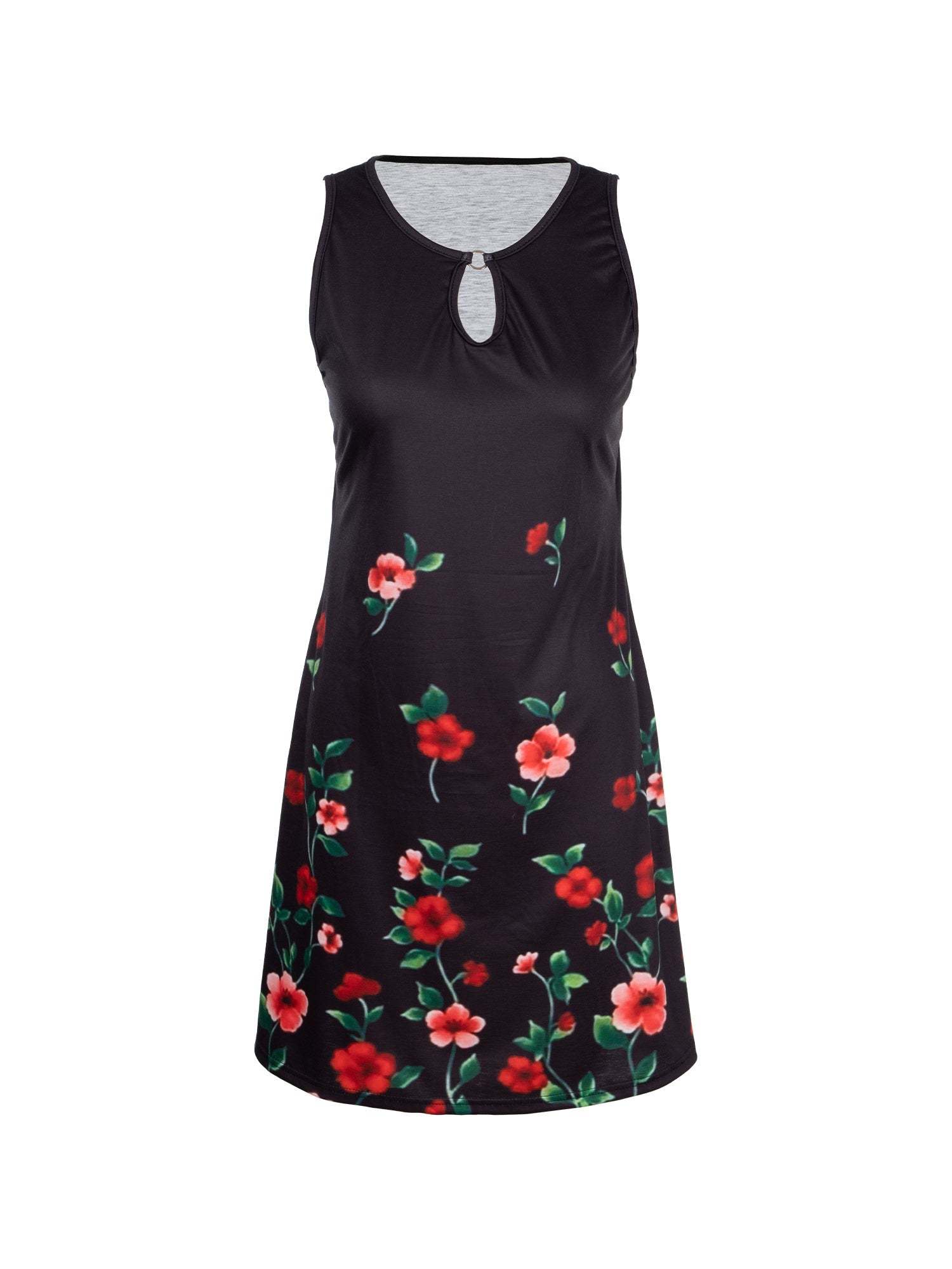 Sale Floral Print Sleeveless Crew Neck Dress, Party Bodycon Loose Stylish Dress