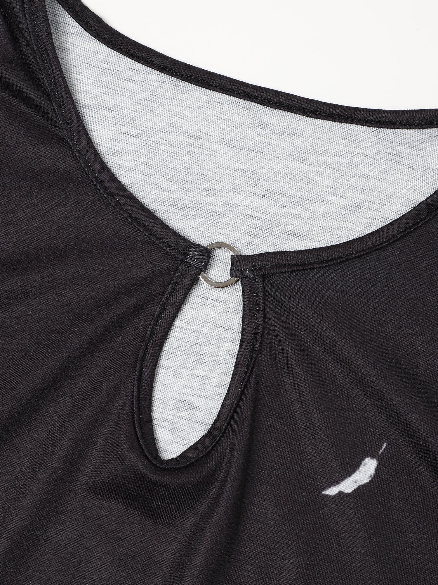 Sale Women's Feather Print Crew Neck Blouse - Casual Cut Out Short Sleeve Top
