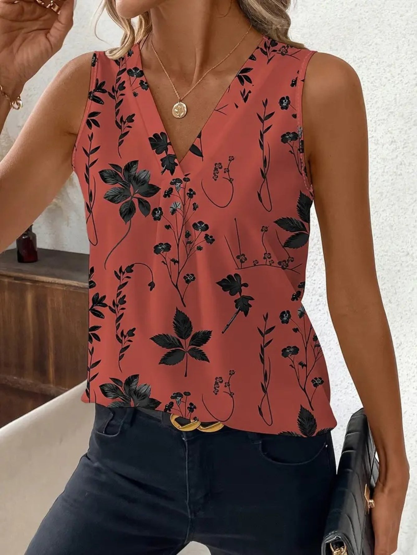 Floral Print V-Neck Sleeveless Shirt
