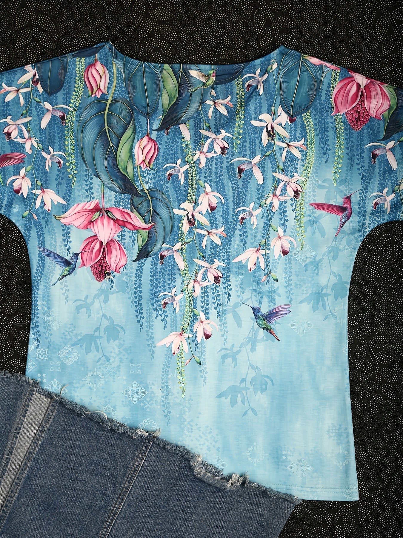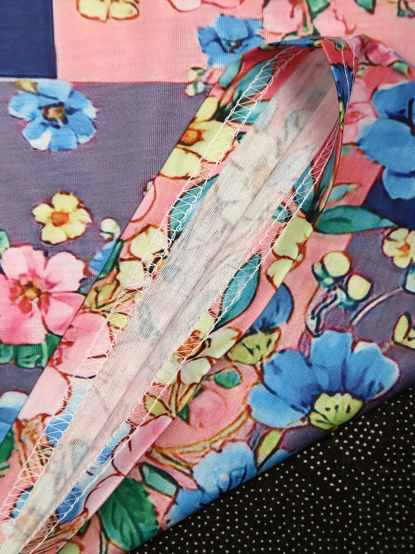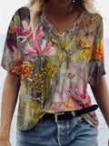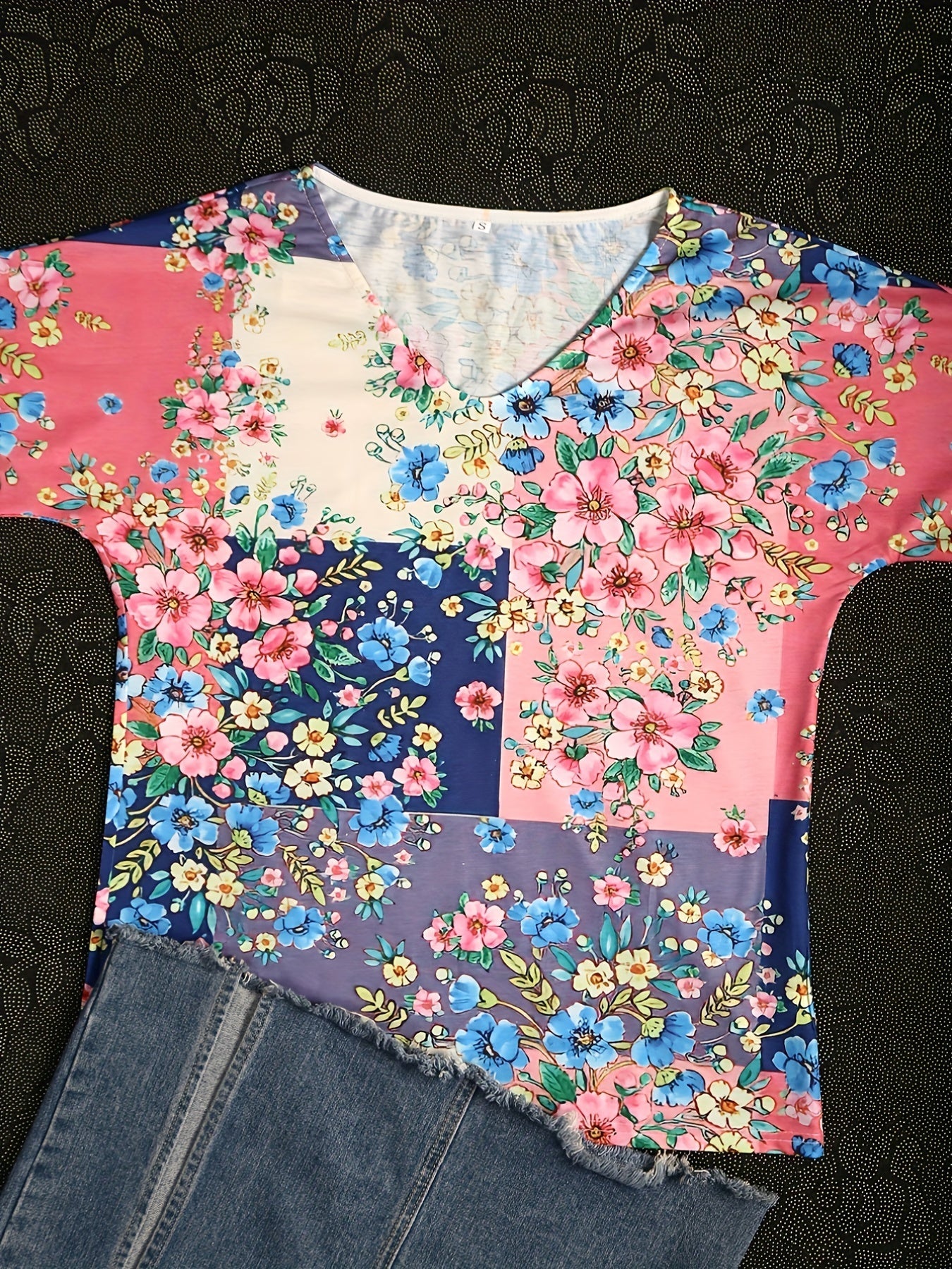 Floral Print V Neck T-Shirt, Short Sleeve Casual Top