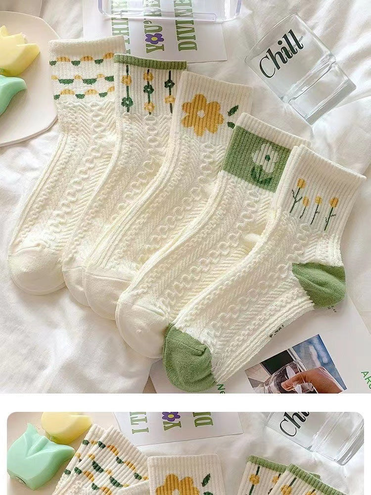 Free Gift Retro Floral Socks , Texture Solid Socks