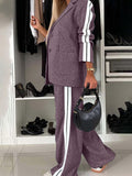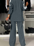 Sale Women's Spring & Fall Loose Two-piece Set, Elegant Solid High Waist Pants And Long Sleeve Top