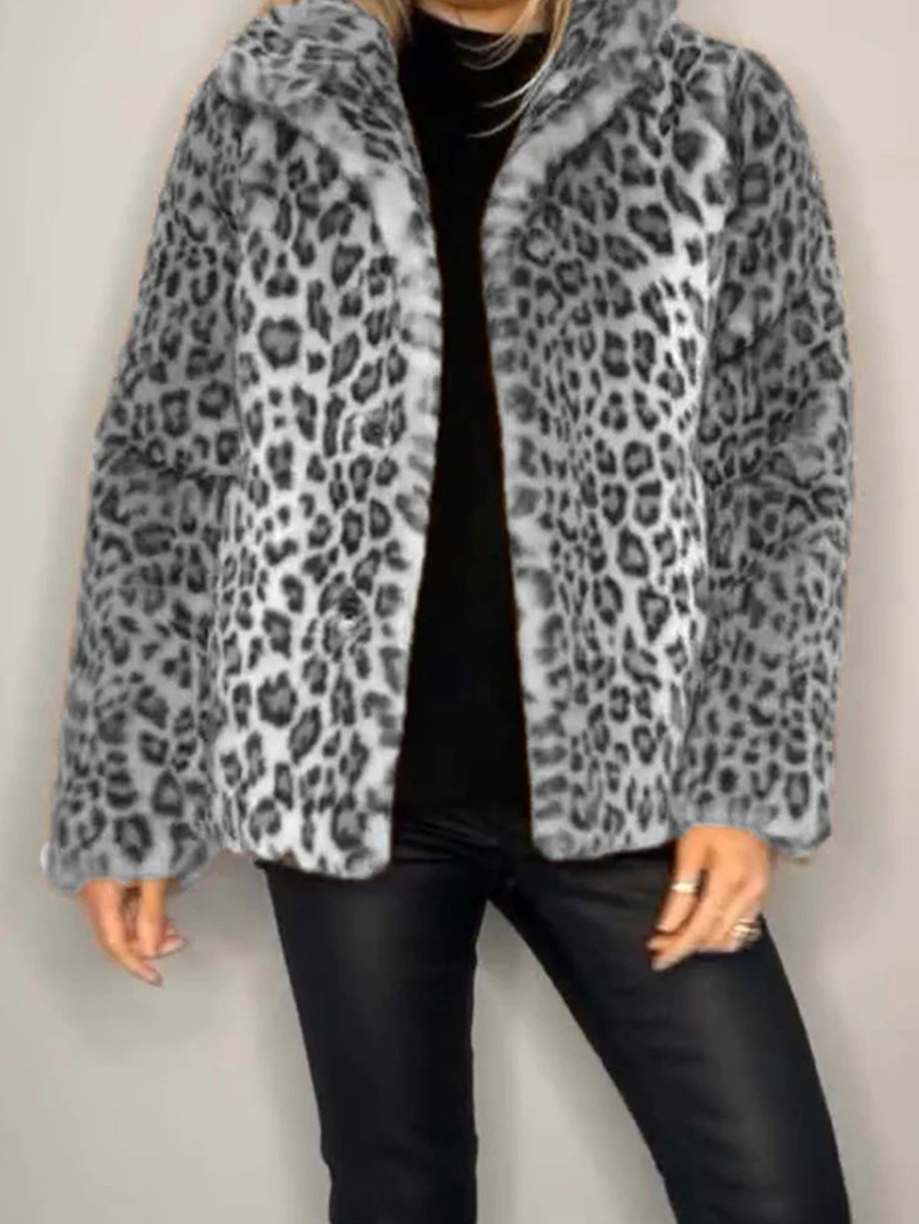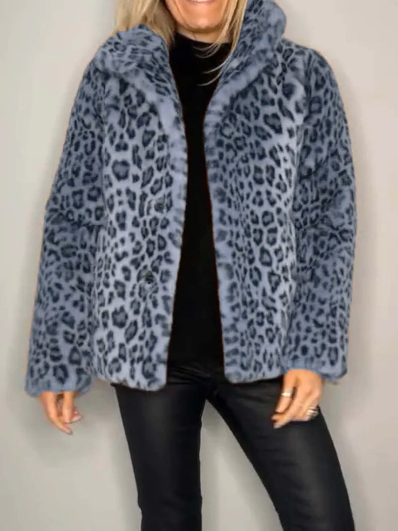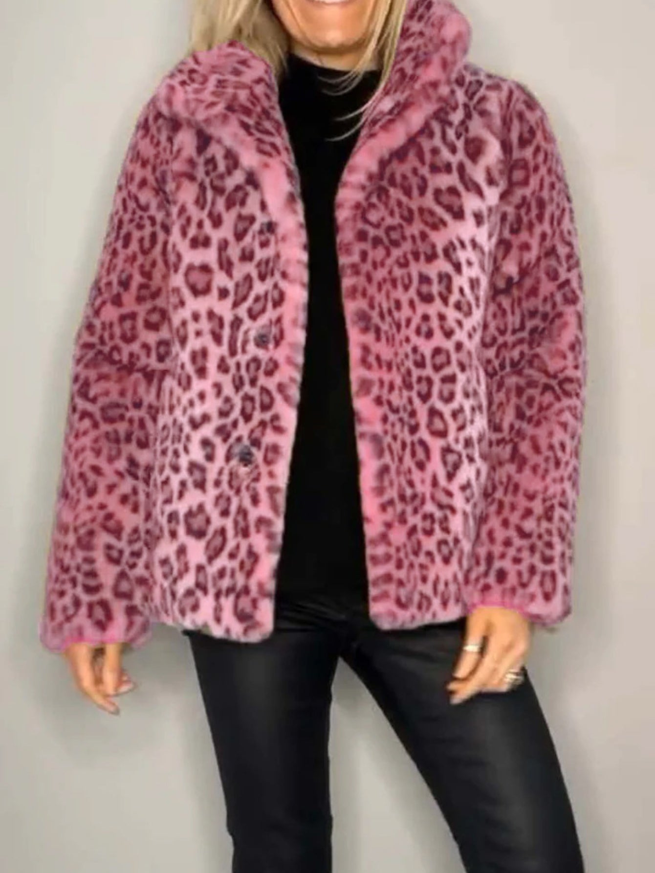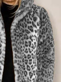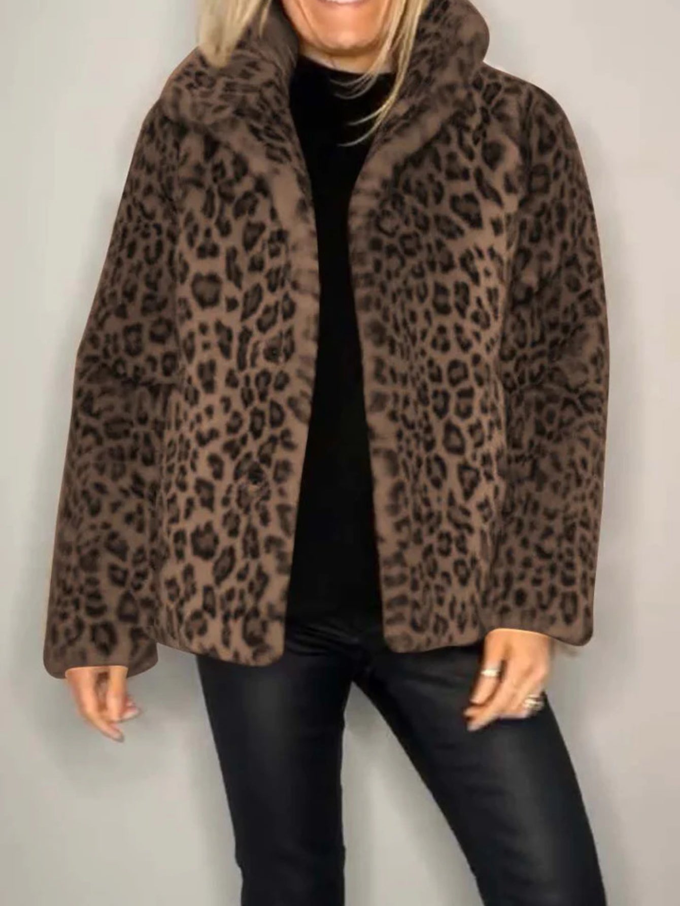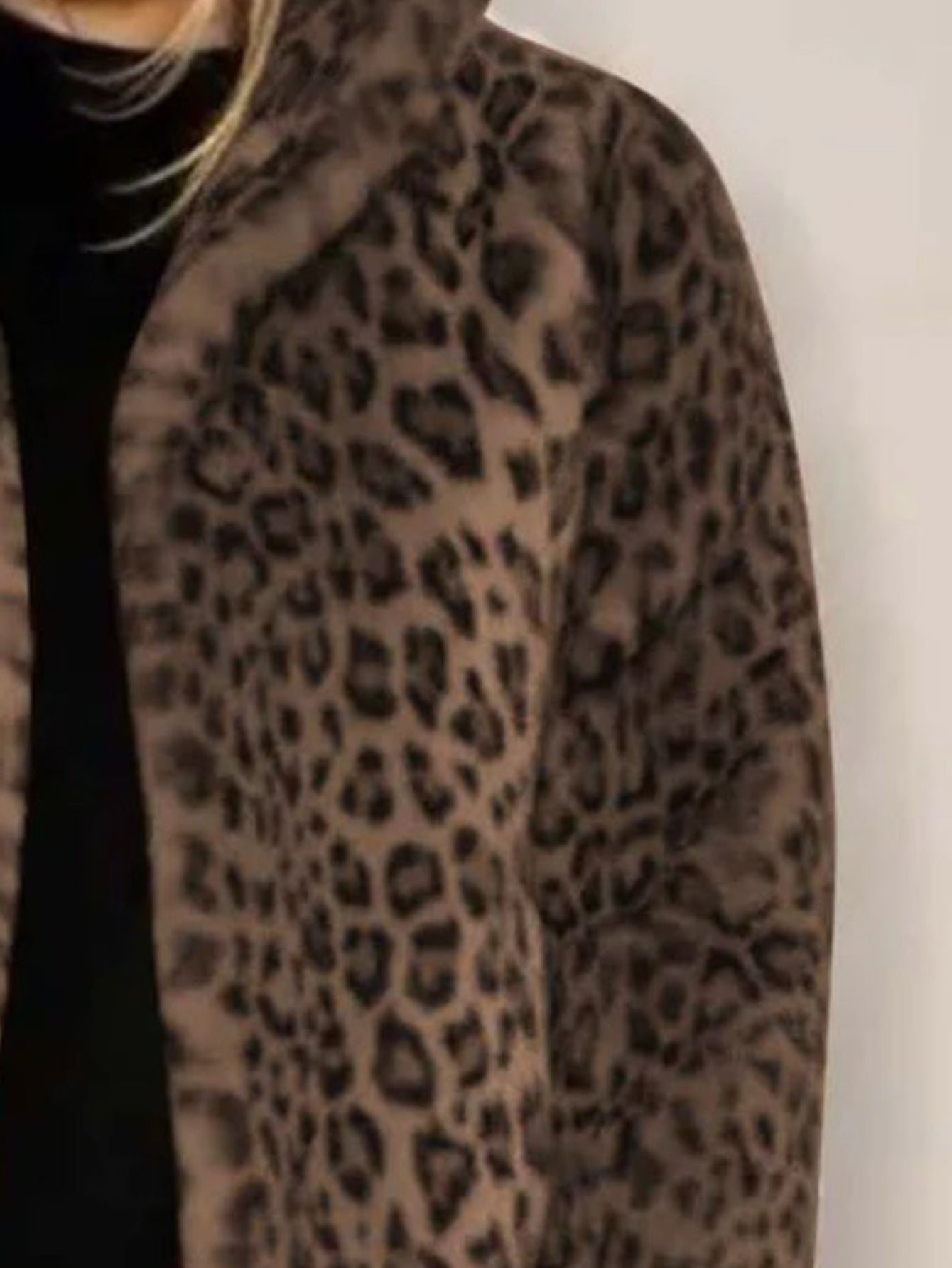 Full Size Leopard Furry Collared Neck Long Sleeve Coat