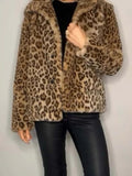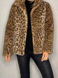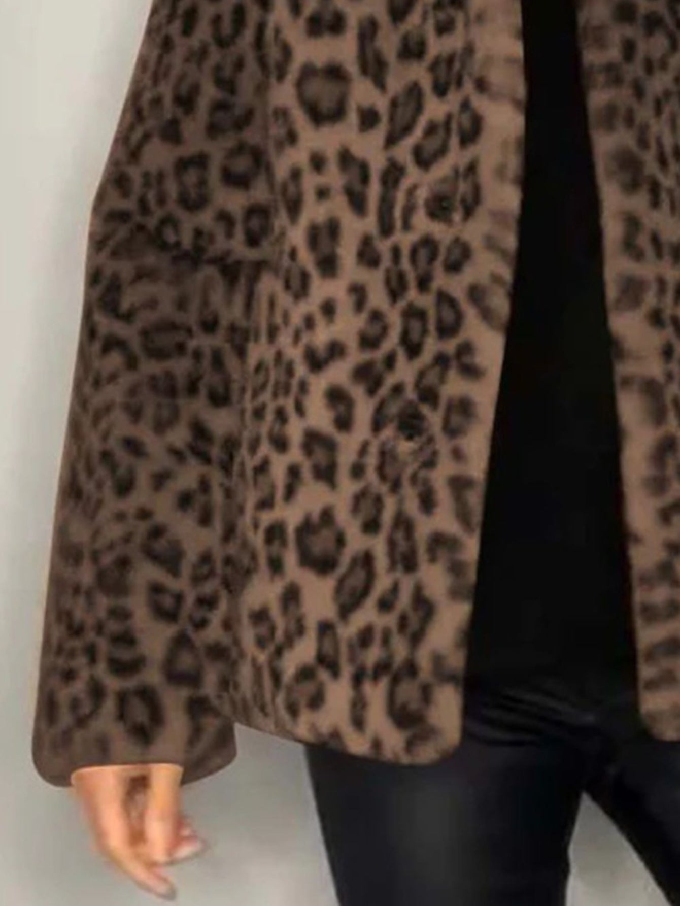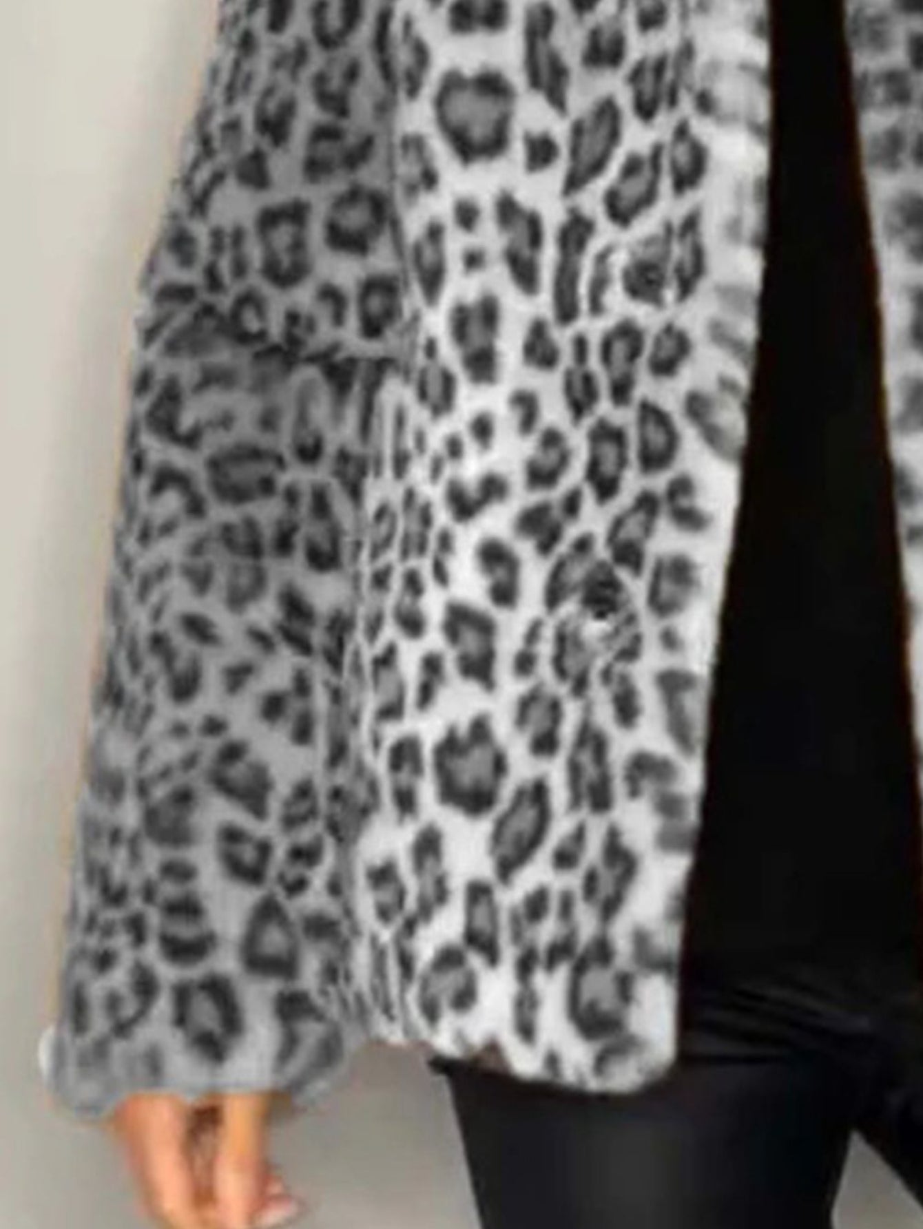 Sale Full Size Leopard Furry Collared Neck Long Sleeve Coat