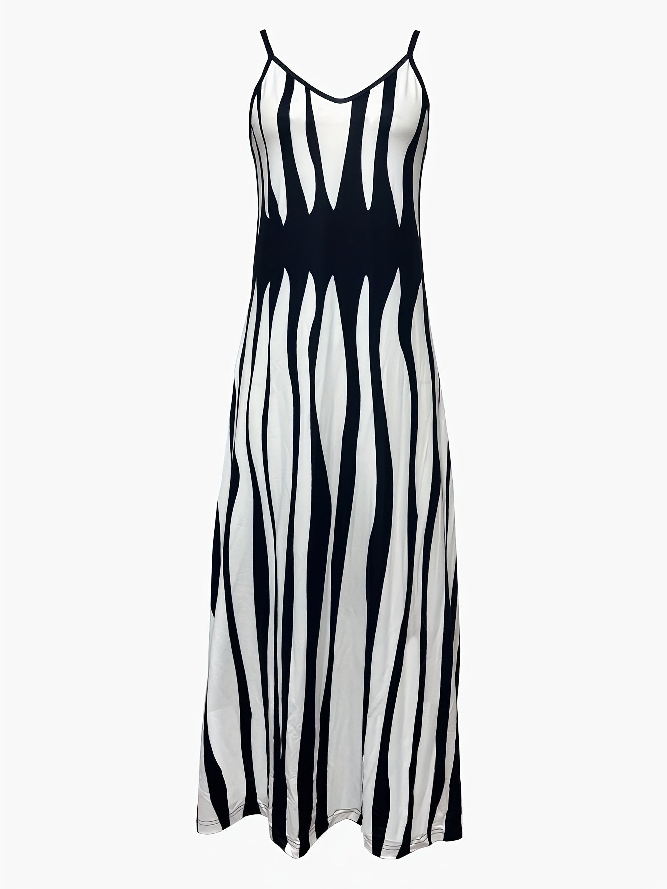 Geo Print V Neck Dress, Casual Spaghetti Strap Sleeveless Dress