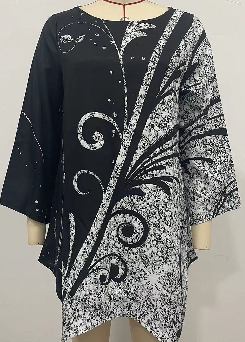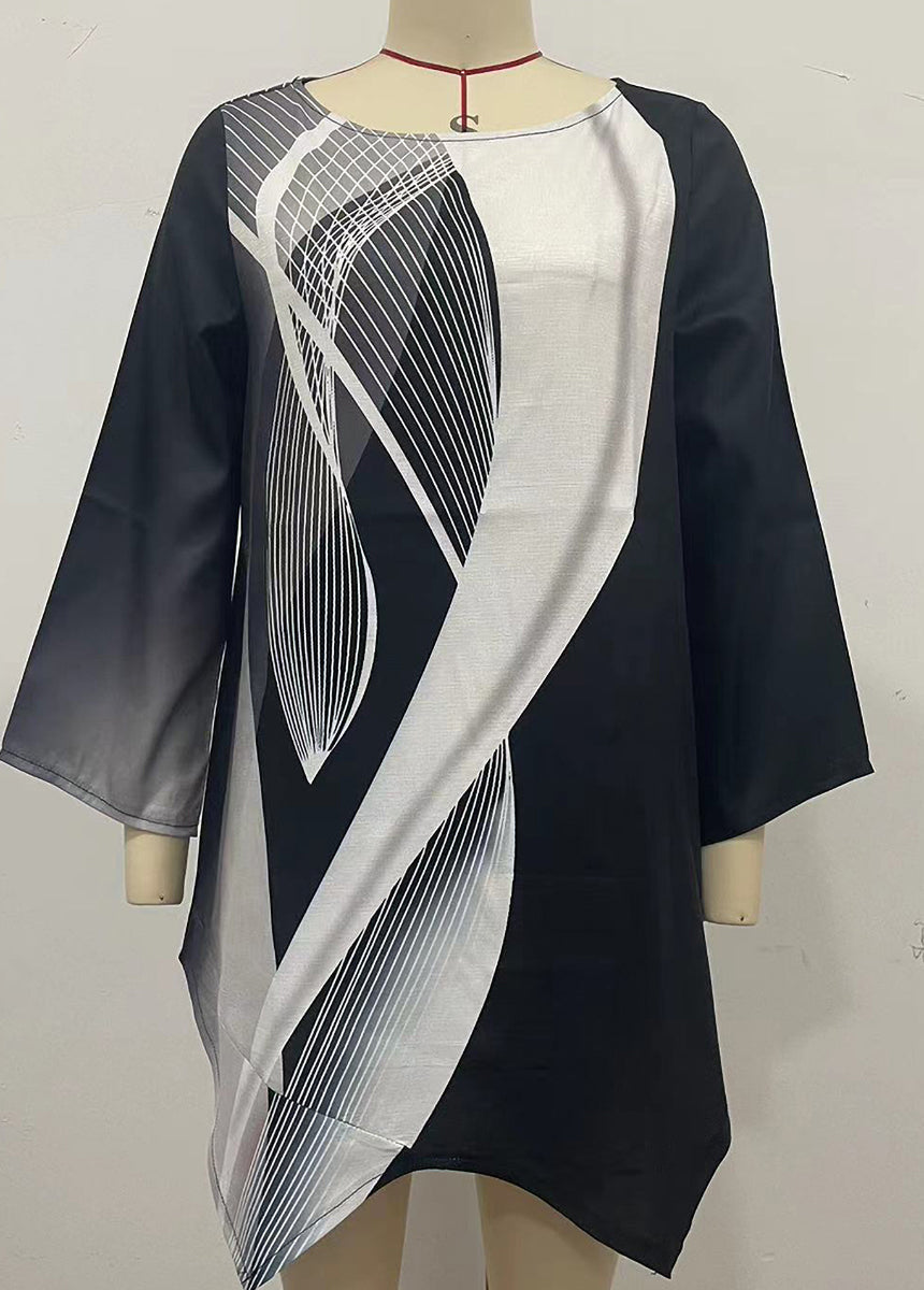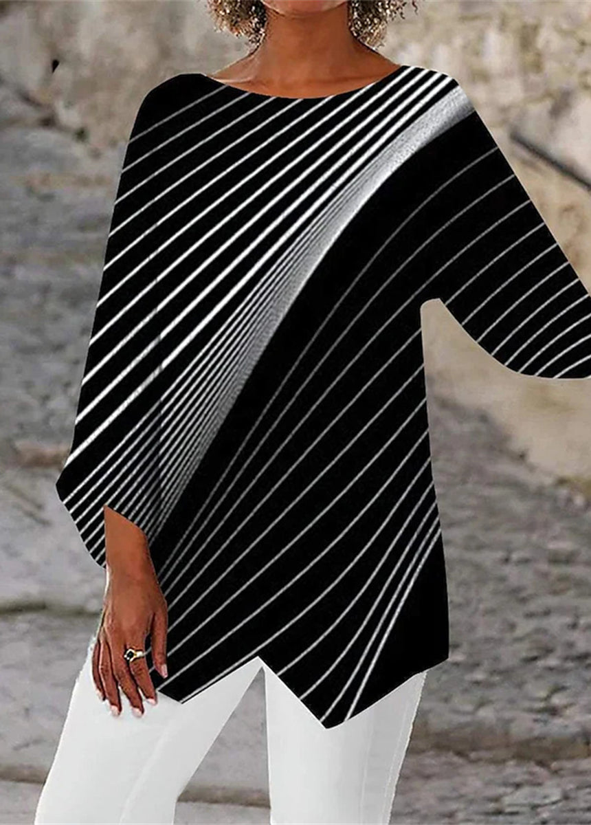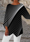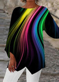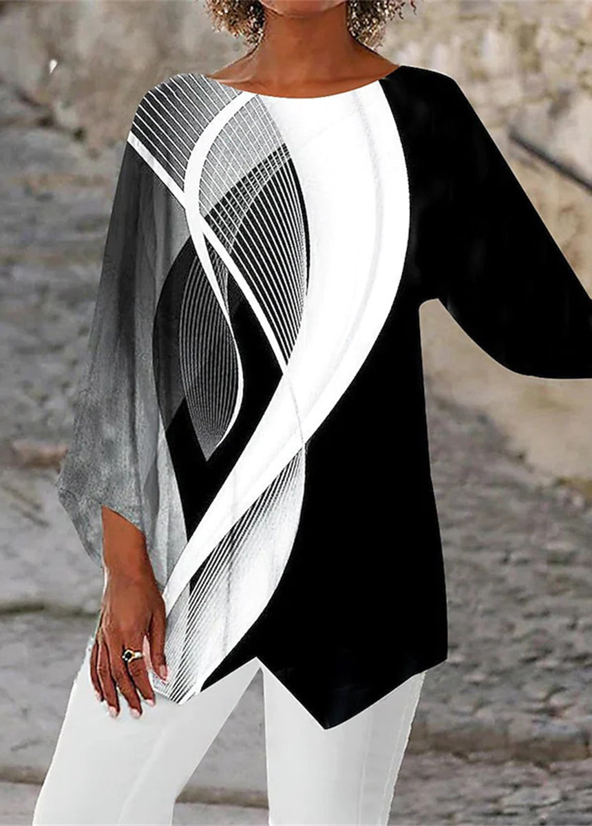 Geometric Print Long Sleeve Stitching Crewneck Shirt