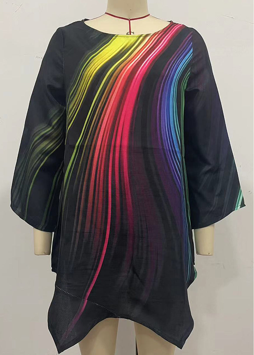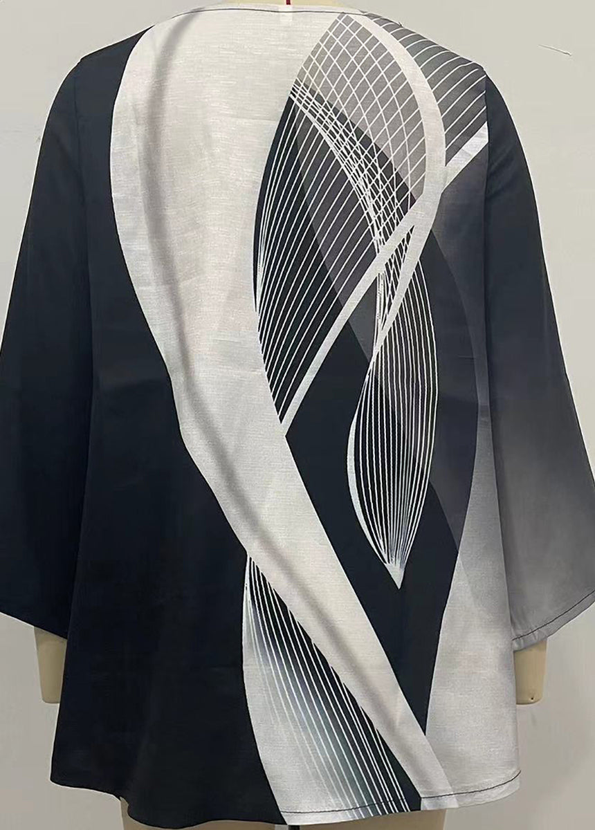 Sale Geometric Print Long Sleeve Stitching Crewneck Shirt