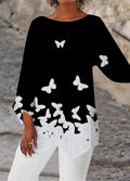 Sale Women's Feather Print Crew Neck Blouse - Casual Cut Out Short Sleeve Top
