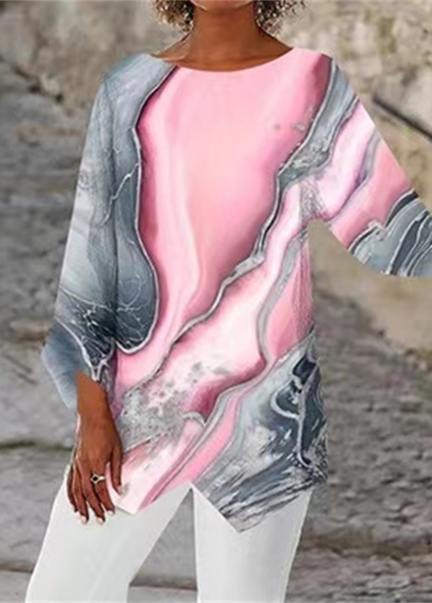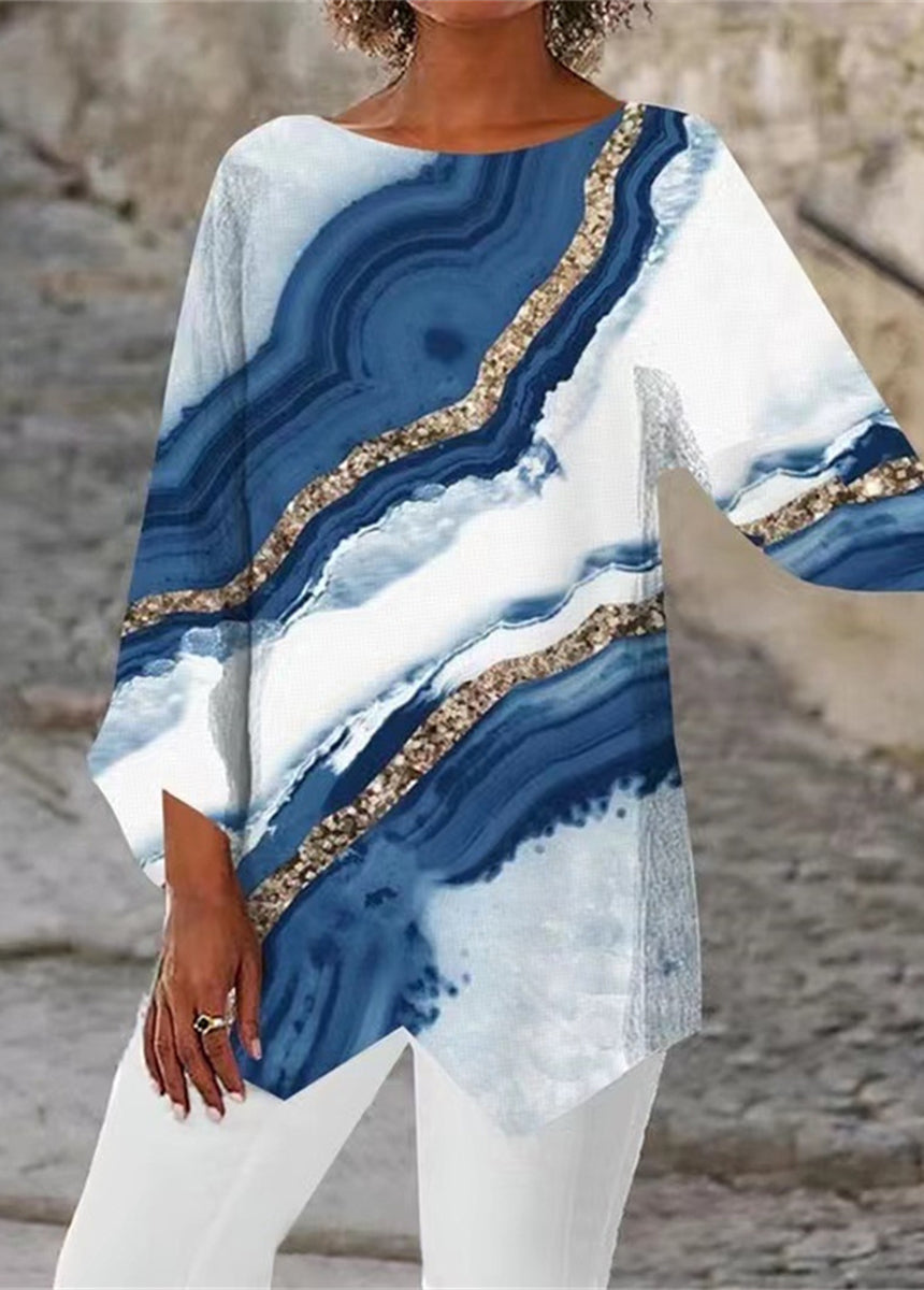 Geometric Printed Long-sleeved Round Collar Shirt Splicing