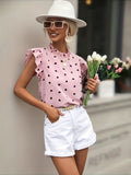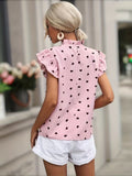 Sale Heart Print Ruffle Trim Blouse, Casual Pleated Crew Neck Blouse