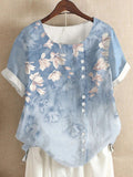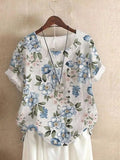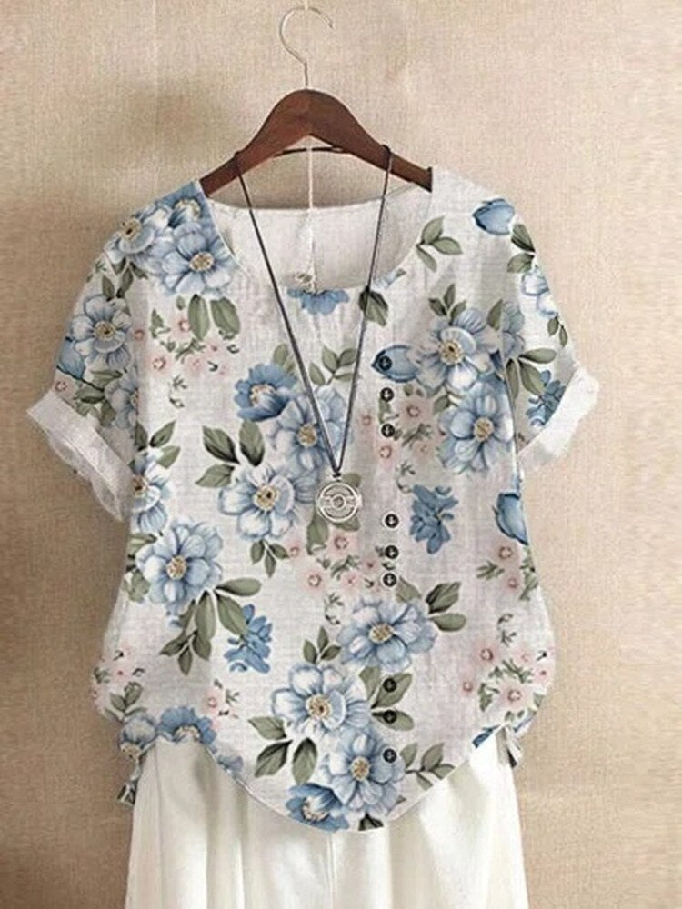 Women Short Sleeve Floral Print O-Neck Casual Loose T-Shirt