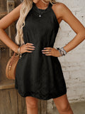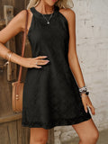 Sale Keyhole Solid Dress, Casual Crew Neck Sleeveless Dress