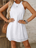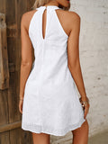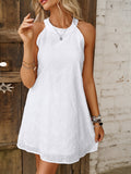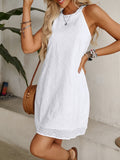 Keyhole Solid Dress, Casual Crew Neck Sleeveless Dress