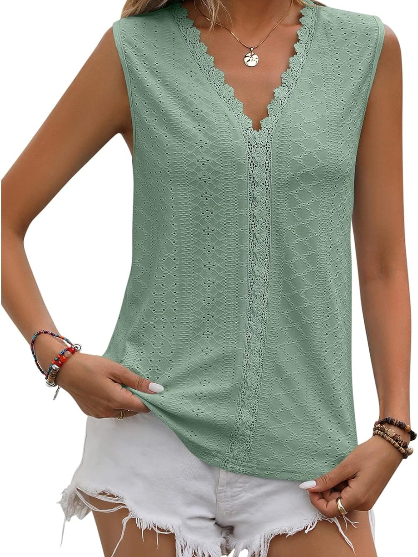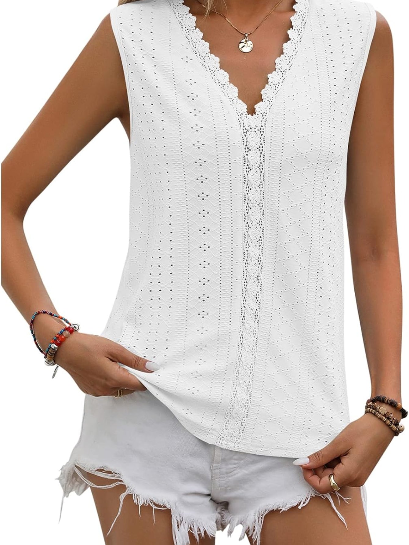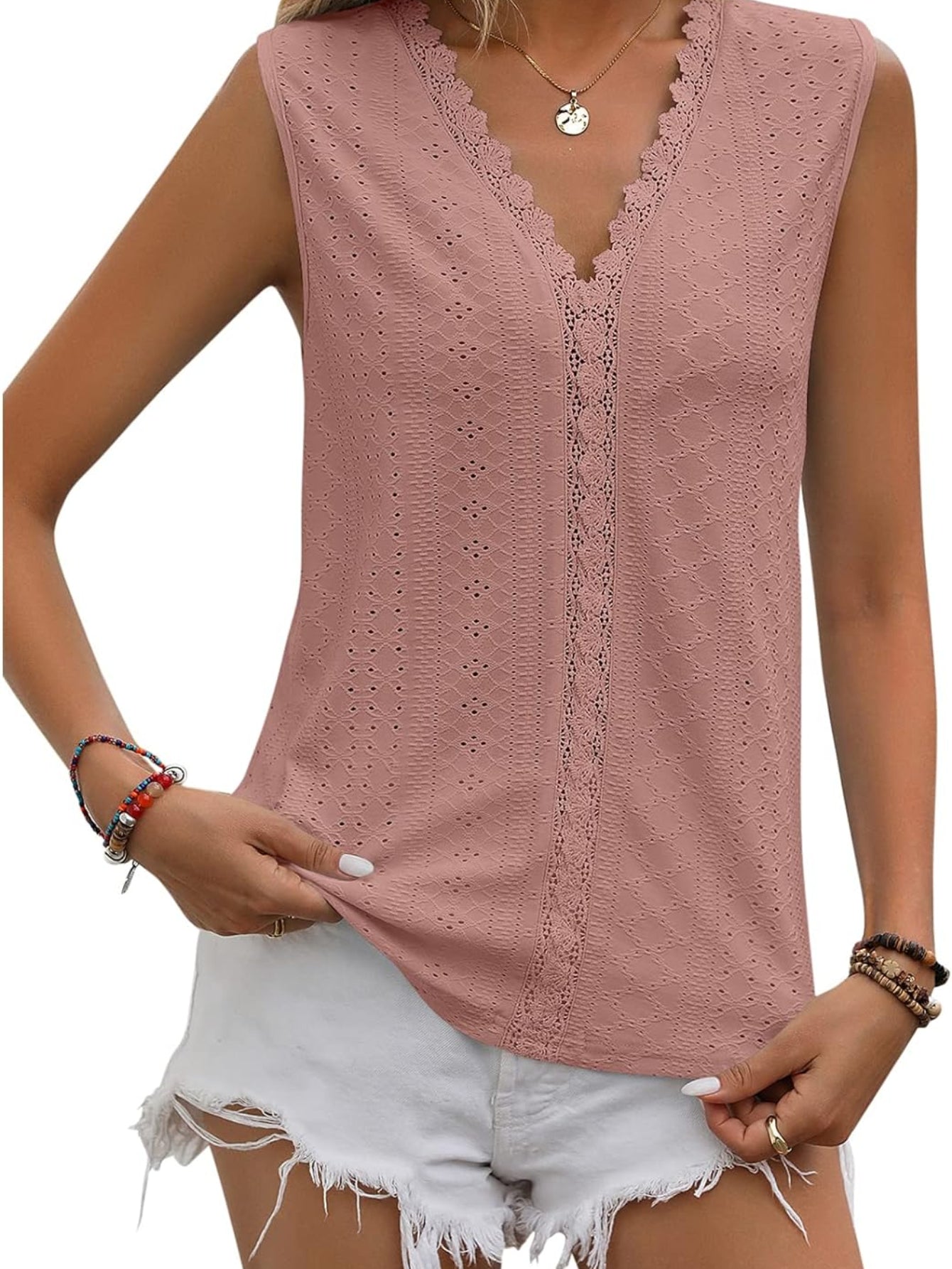 Sale Lace Casual Cute Solid V Neck Tank Tops