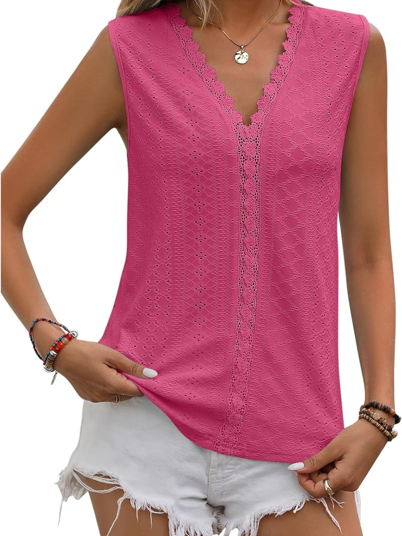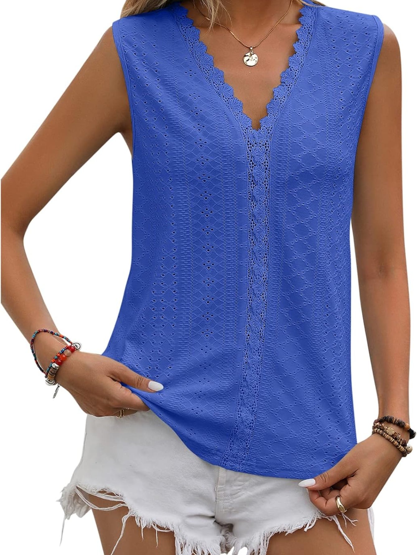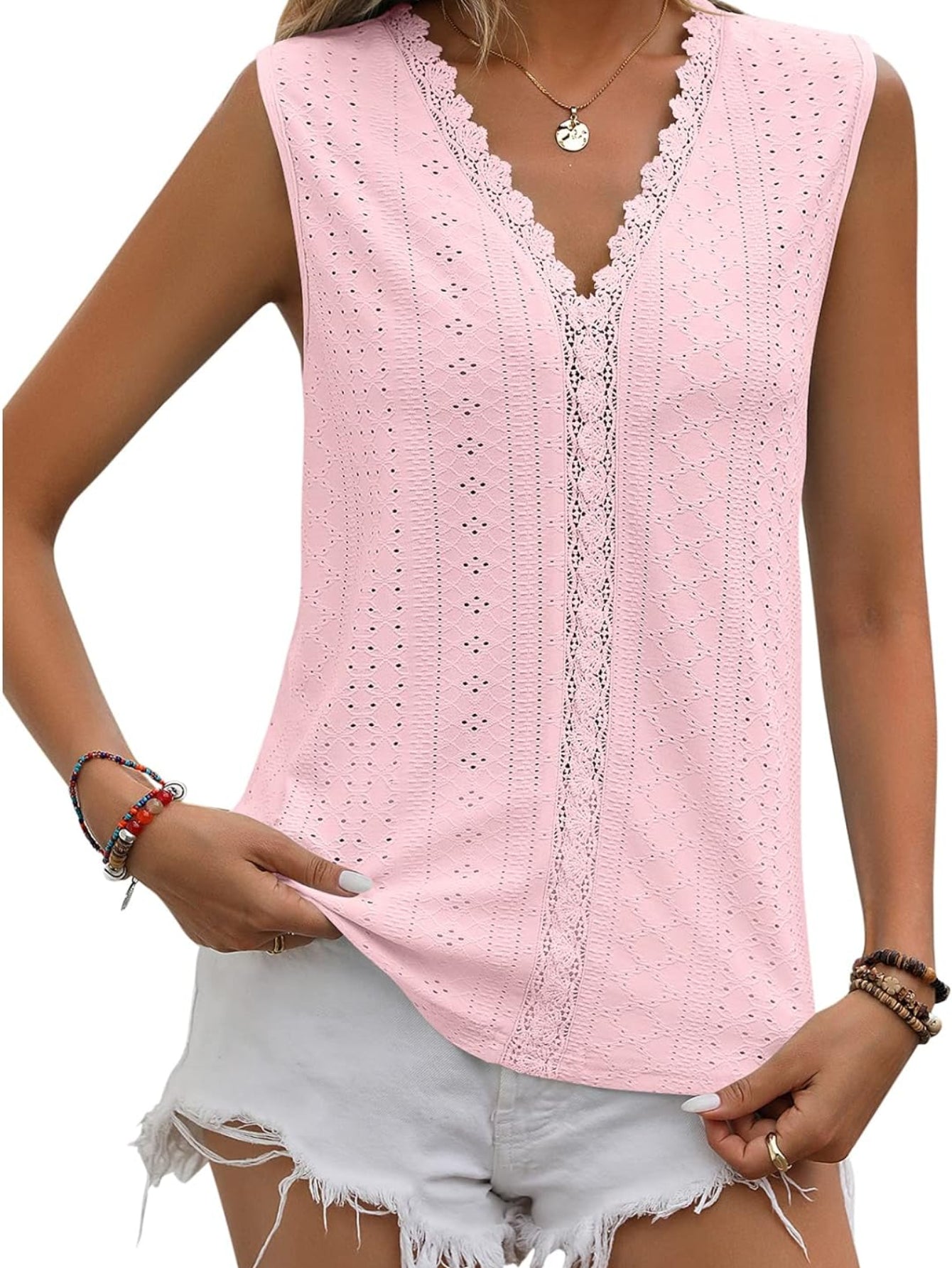 Sale Lace Casual Cute Solid V Neck Tank Tops