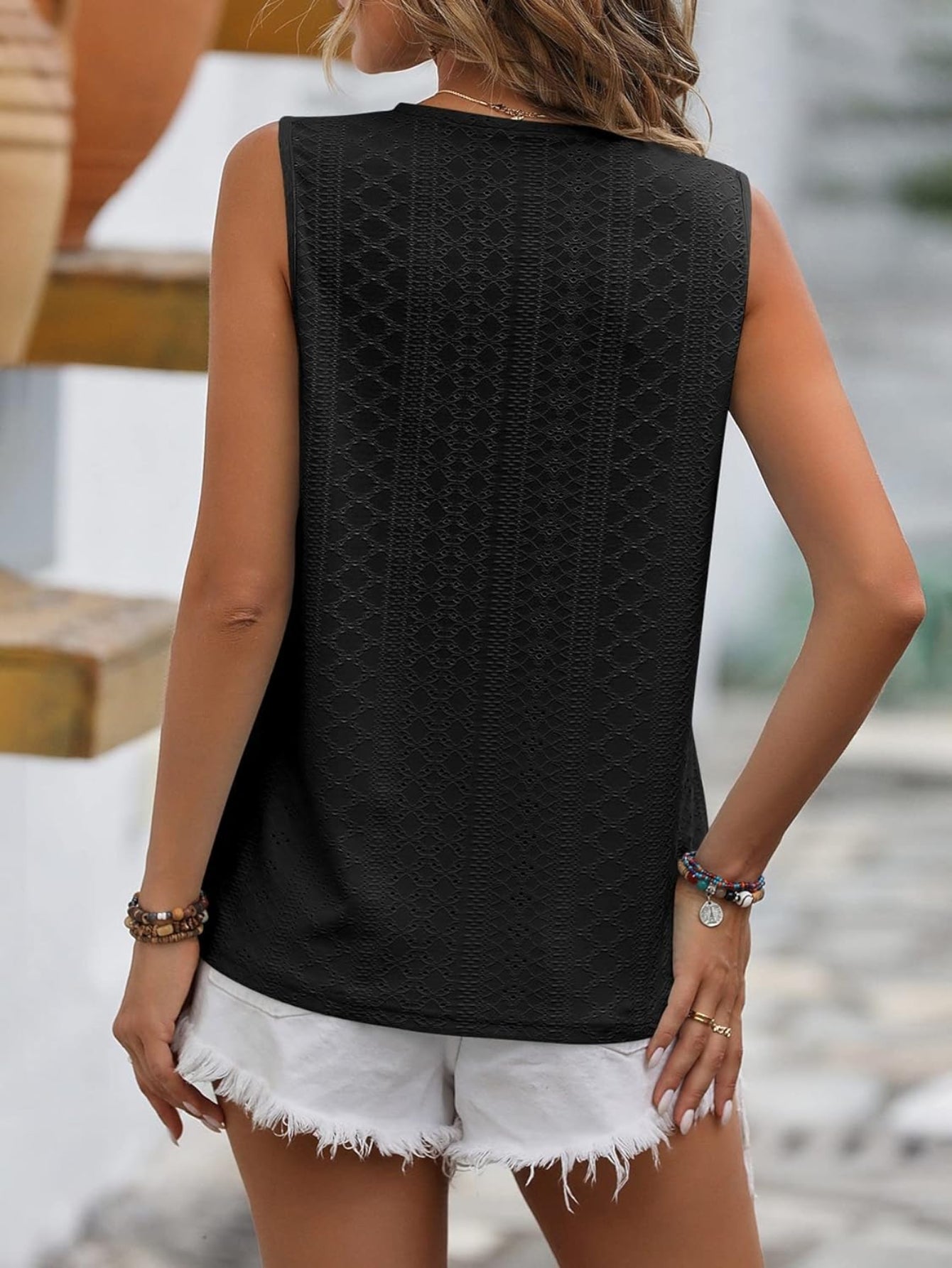 Sale Textured Mock Neck Tank Top, Casual Sleeveless Top