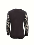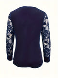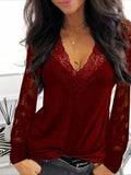Lace Hem Stitching V-Neck Long Sleeve T-Shirt - Elegant Casual Wear, Soft Fabric